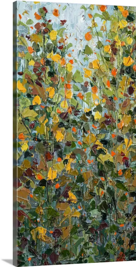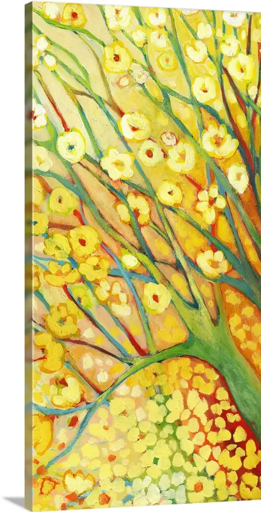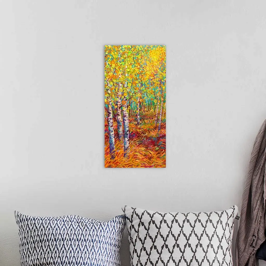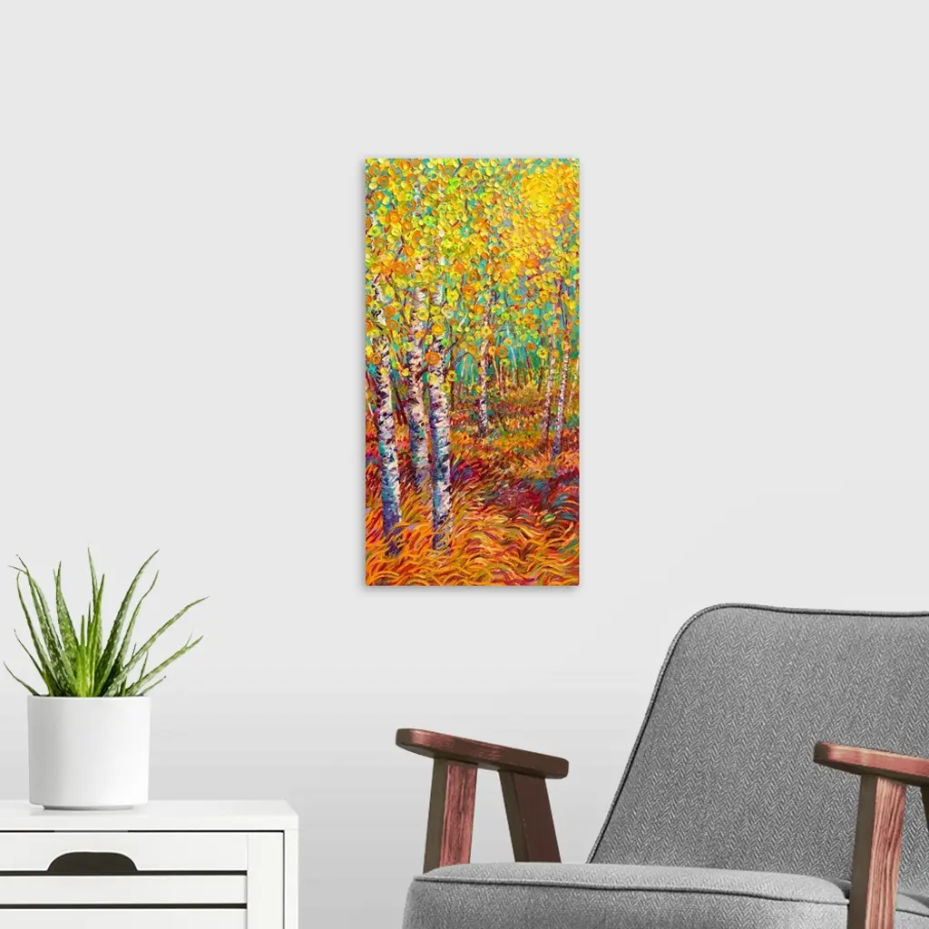 Brightly colored contemporary artwork of a landscape painting of trees.