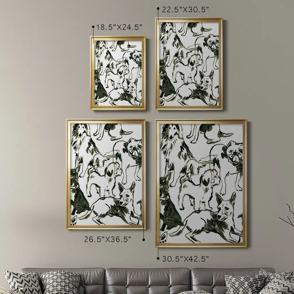 Canine Collage I Premium Framed Print - Ready to Hang A Premium Framed Print created to last. Framed in distressed wood and available in an array of sizes and colors Featuring a beveled a solid wood stretcher bar, each piece comes ready to hand 4 SIZES AVAILABLE 30.5''X42.5'' - Overall Size 26.5'X36.5'' - Overall Size 22.5''x30.5'' - Overall Size 18.5''x24.5'' - Overall Size Each piece is made to order. Each piece comes with hanging hardware. Made in the USA Ready to Hang