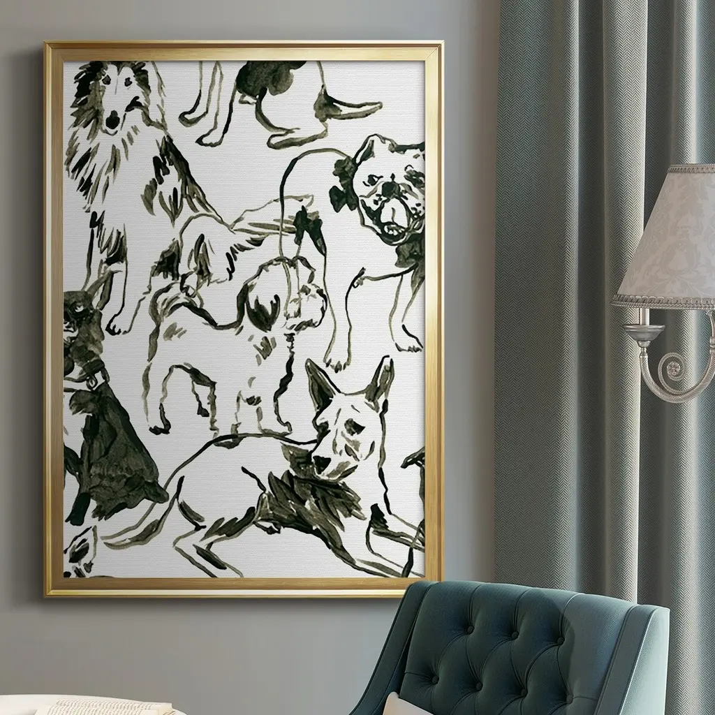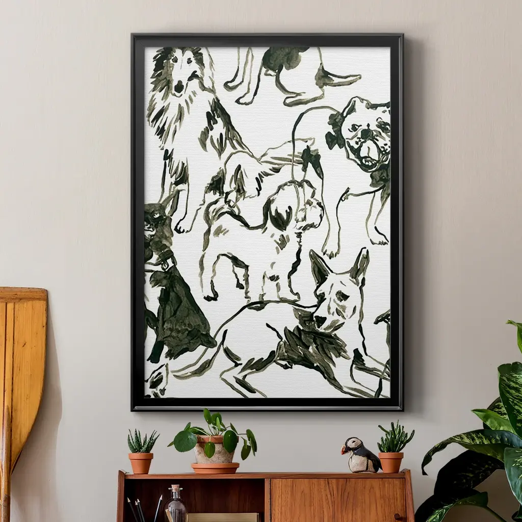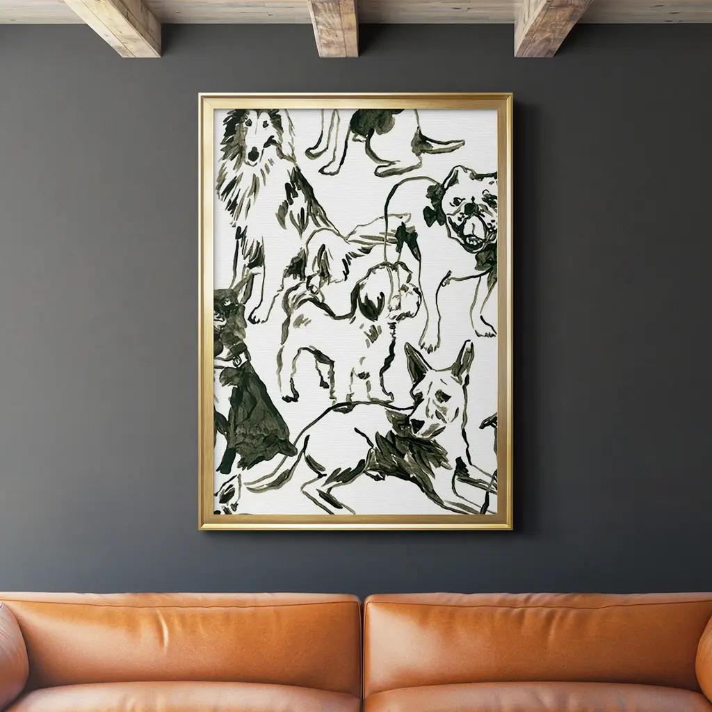 Canine Collage I Premium Framed Print - Ready to Hang A Premium Framed Print created to last. Framed in distressed wood and available in an array of sizes and colors Featuring a beveled a solid wood stretcher bar, each piece comes ready to hand 4 SIZES AVAILABLE 30.5''X42.5'' - Overall Size 26.5'X36.5'' - Overall Size 22.5''x30.5'' - Overall Size 18.5''x24.5'' - Overall Size Each piece is made to order. Each piece comes with hanging hardware. Made in the USA Ready to Hang