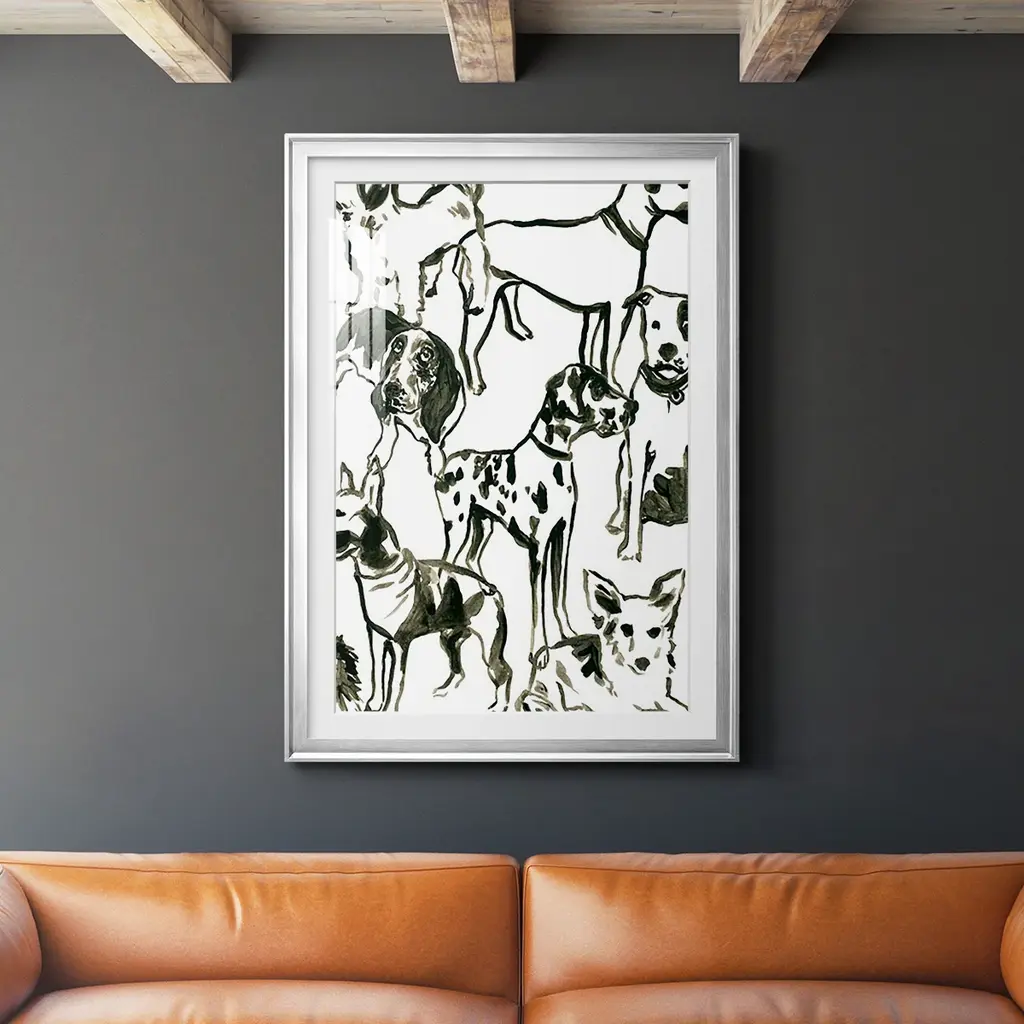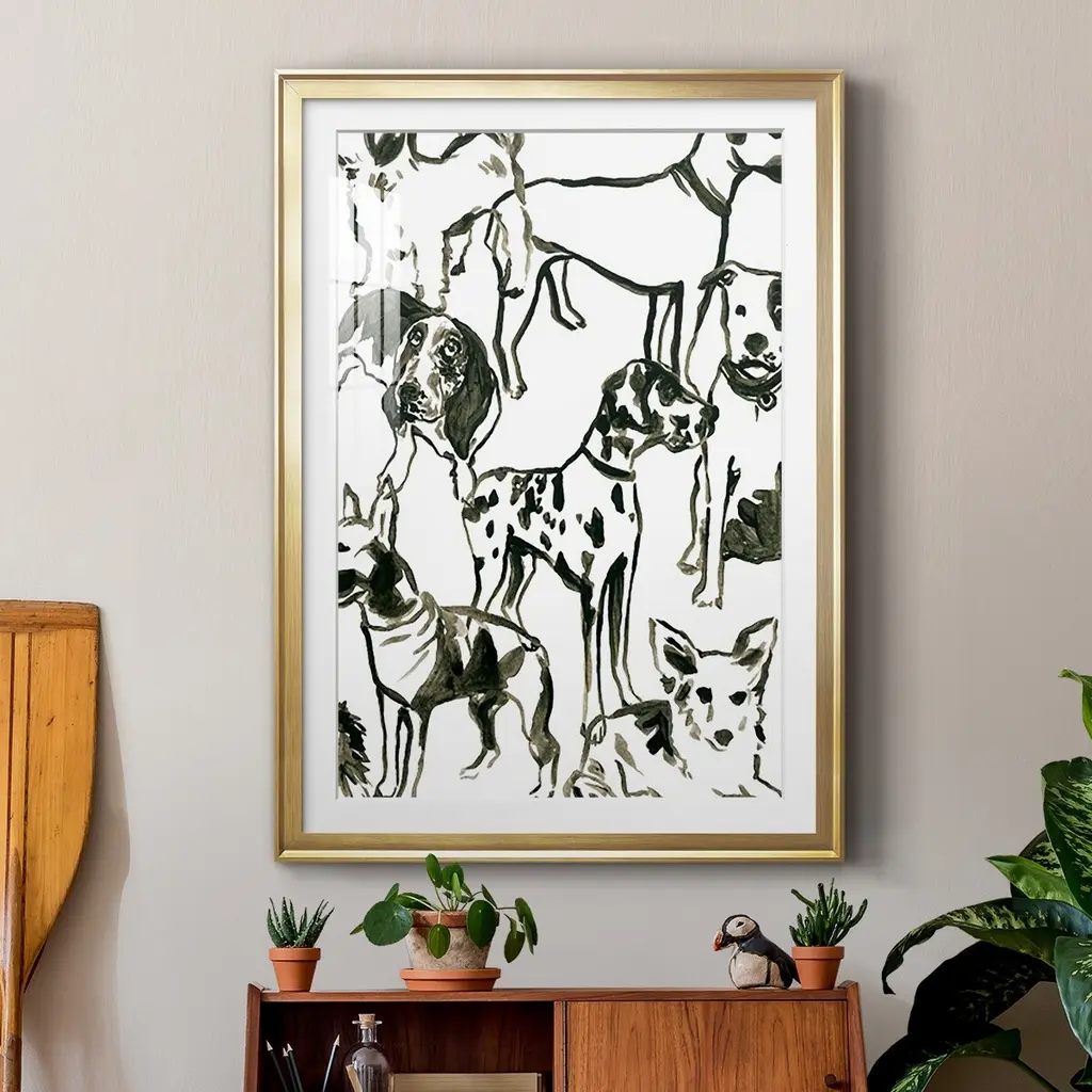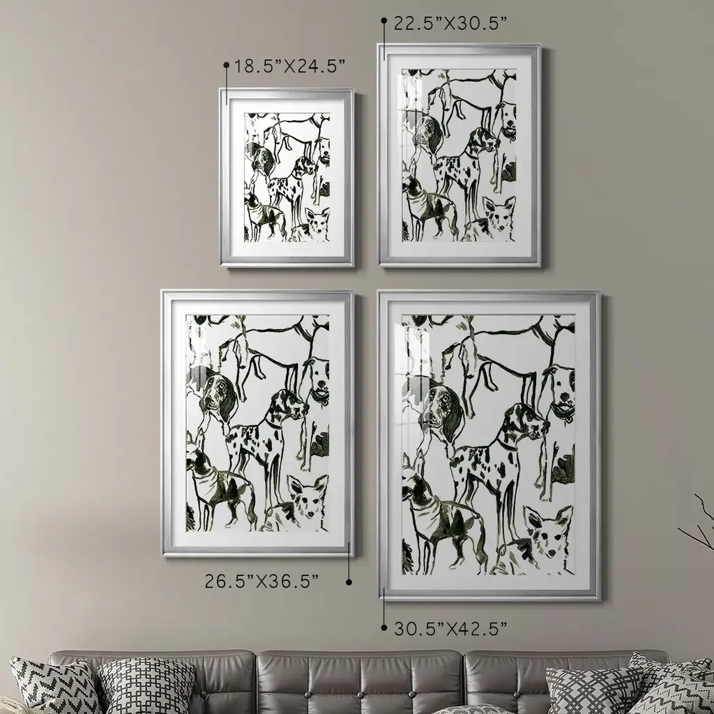 Canine Collage II Premium Framed Print - Ready to Hang A Premium Framed Print created to last. Framed in distressed wood and available in an array of sizes and colors Featuring a beveled a solid wood stretcher bar, each piece comes ready to hand 4 SIZES AVAILABLE 30.5''X42.5'' - Overall Size 26.5'X36.5'' - Overall Size 22.5''x30.5'' - Overall Size 18.5''x24.5'' - Overall Size Each piece is made to order. Each piece comes with hanging hardware. Made in the USA Ready to Hang Giclee Paper Print Acrylic Glass Beveled Matt Board