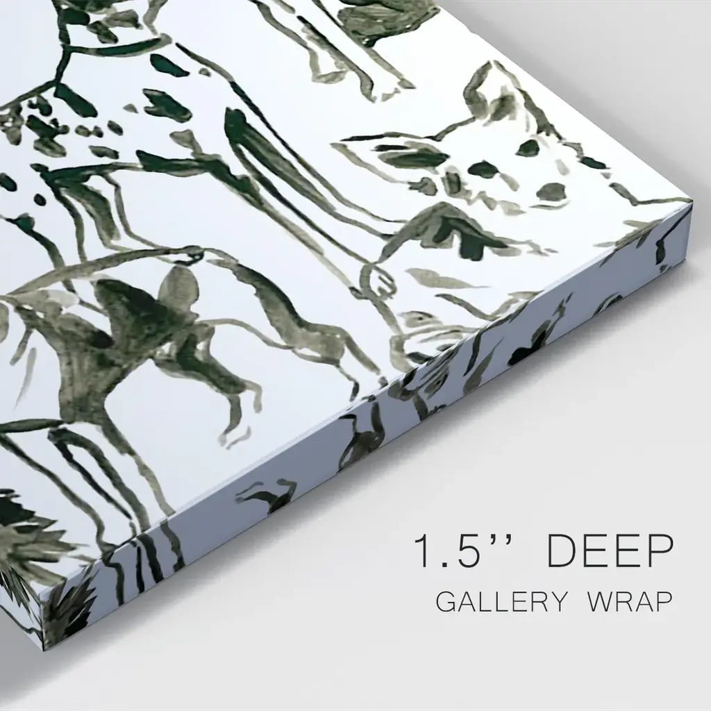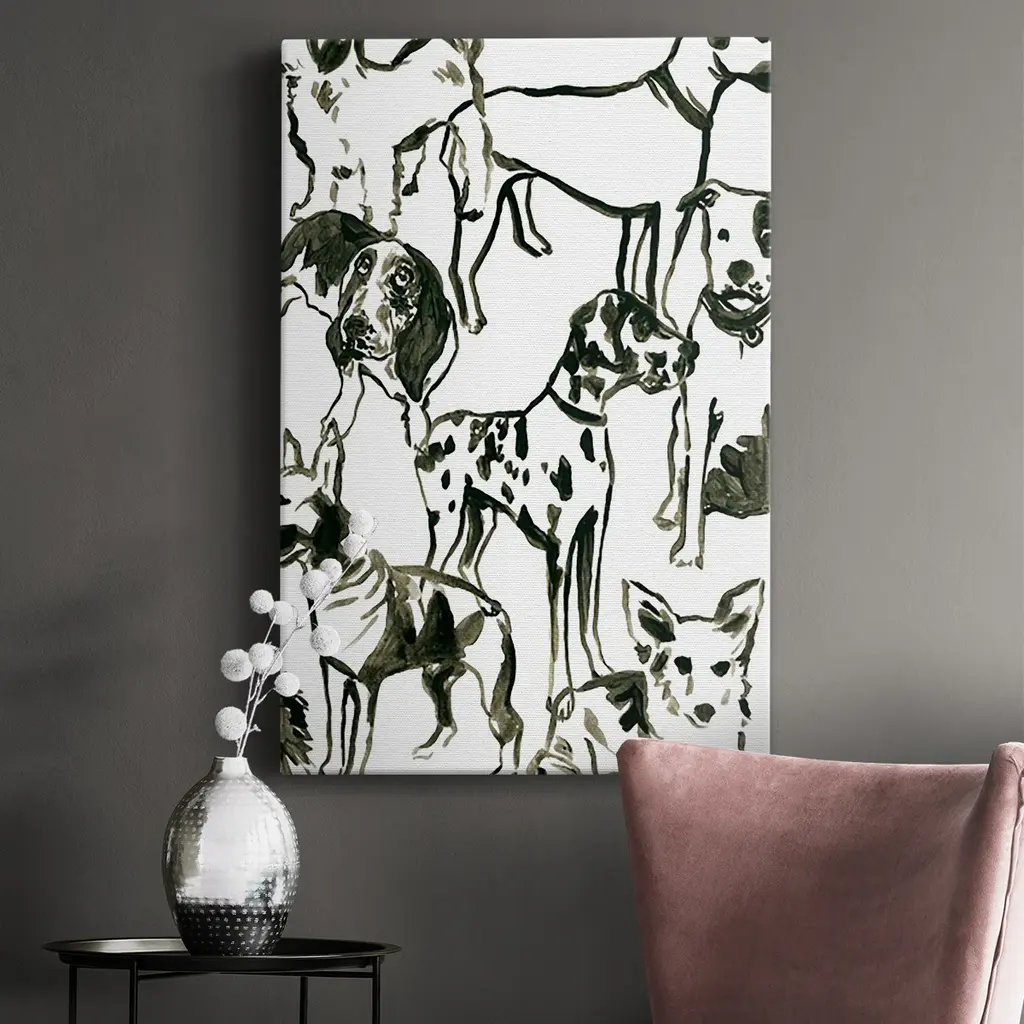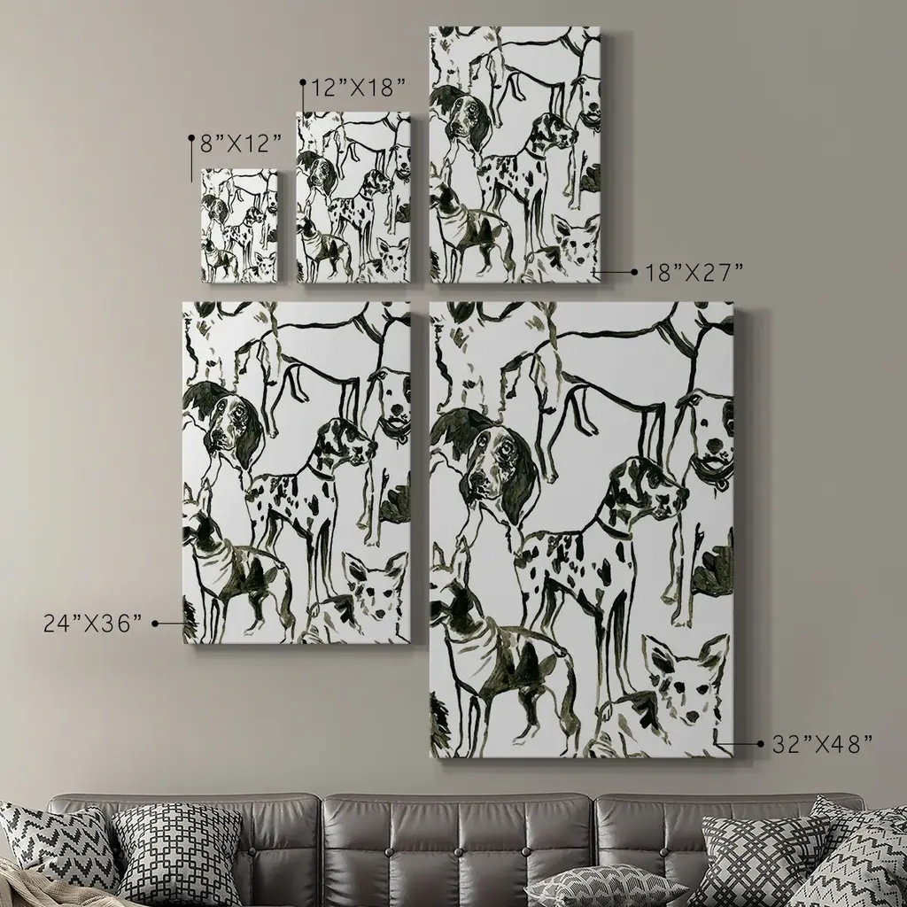 Canine Collage II Premium Gallery Wrapped Canvas - Ready to Hang A premium hand stretched gallery wrapped canvas print created to last. Featuring a beveled a solid wood stretcher bar, each piece comes ready to hand 6 SIZES AVAILABLE 8''X12'' - Overall Size 12''X18'' - Overall Size 18''X27'' - Overall Size 24''x36'' - Overall Size 32''x48'' - Overall Size 40''x60'' - Overall Size Each piece is made to order. Built to Last Each piece comes ready to hang Solid wood stretcher Fade and Water resistant Made domestically