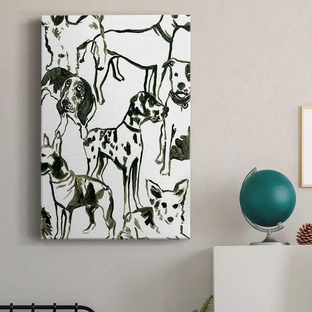Canine Collage II Premium Gallery Wrapped Canvas - Ready to Hang A premium hand stretched gallery wrapped canvas print created to last. Featuring a beveled a solid wood stretcher bar, each piece comes ready to hand 6 SIZES AVAILABLE 8''X12'' - Overall Size 12''X18'' - Overall Size 18''X27'' - Overall Size 24''x36'' - Overall Size 32''x48'' - Overall Size 40''x60'' - Overall Size Each piece is made to order. Built to Last Each piece comes ready to hang Solid wood stretcher Fade and Water resistant Made domestically