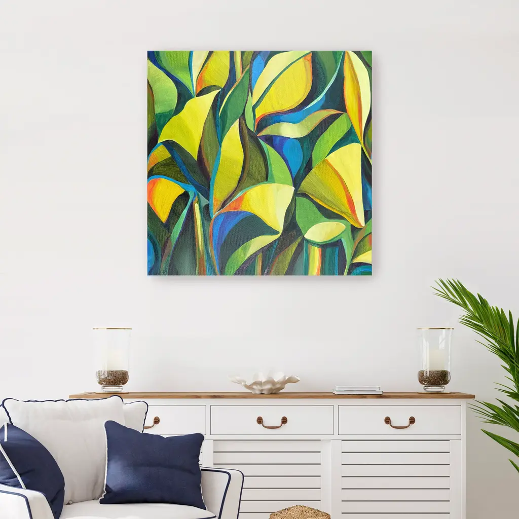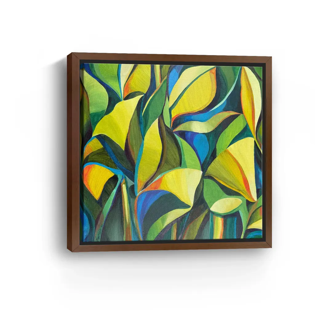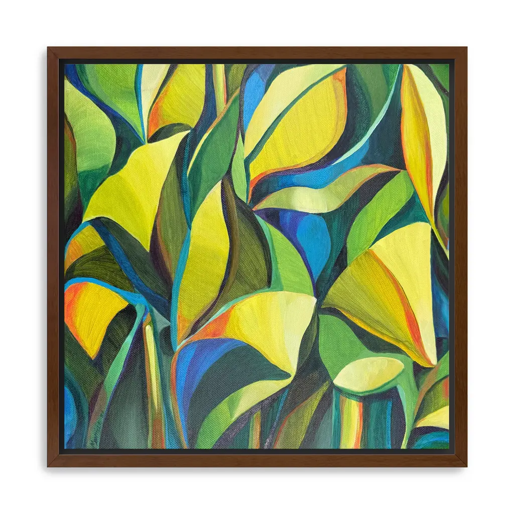 Enhance your living space with this captivating abstract botanical green canvas art "Cannalilies - Spring's Song" by Nadine Montille. Featuring a vibrant interplay of lush green tones and organic botanical elements, this artwork brings a refreshing touch of nature indoors. The dynamic composition and soothing hues create a harmonious and serene atmosphere, making it a perfect addition to both contemporary and classic interiors. Available in black frame, dark walnut frame, oak frame, or as a wrapped canvas. Our Gallery Wrap Canvas Prints are proudly assembled with high quality materials in California, USA. Each piece is printed on a thick, archival grade canvas using Giclee technology. It is then hand-stretched by our experienced artisans over solid wood bars, which will not warp over time. The final product is a piece personally crafted for you to confidently display on your wall. Care and Assembly: Ensure that the location of your piece has little to no exposure to heat, sunlight, and moisture. Wipe clean, only if needed. Each piece includes a sawtooth hanger to hang on your wall horizontally.