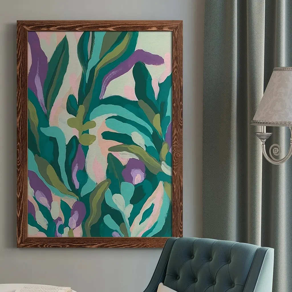 Enhance your living space with this captivating abstract botanical green canvas art "Cannalilies - The First Morning" by Nadine Montille. Featuring a vibrant interplay of lush green tones and organic botanical elements, this artwork brings a refreshing touch of nature indoors. The dynamic composition and soothing hues create a harmonious and serene atmosphere, making it a perfect addition to both contemporary and classic interiors. Available in black frame, dark walnut frame, oak frame, or as a wrapped canvas. Our Gallery Wrap Canvas Prints are proudly assembled with high quality materials in California, USA. Each piece is printed on a thick, archival grade canvas using Giclee technology. It is then hand-stretched by our experienced artisans over solid wood bars, which will not warp over time. The final product is a piece personally crafted for you to confidently display on your wall. Care and Assembly: Ensure that the location of your piece has little to no exposure to heat, sunlight, and moisture. Wipe clean, only if needed. Each piece includes a sawtooth hanger to hang on your wall horizontally.