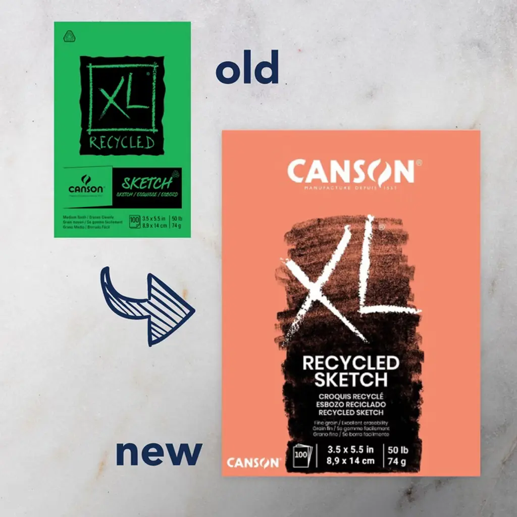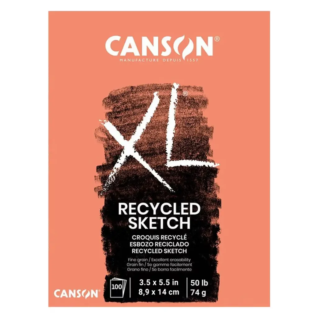 Canson XL Series Sketch Pad, Recycled, Foldover Binding, 100 Sheet, 3.5x5.5 inch, Pack of 3 | The Canson XL range was specifically developed to meet the needs of art students -- high sheet counts, various textures and weights, and sturdy binding at an affordable price. Students can explore their personal tastes and techniques across drawing, paint, and mixed media art forms. Artists often carry their love of XL after their coursework is complete and throughout their professional careers - it's hard to find a creative who doesn't have a Canson XL pad within arm's reach! Sold as a pack of 3.