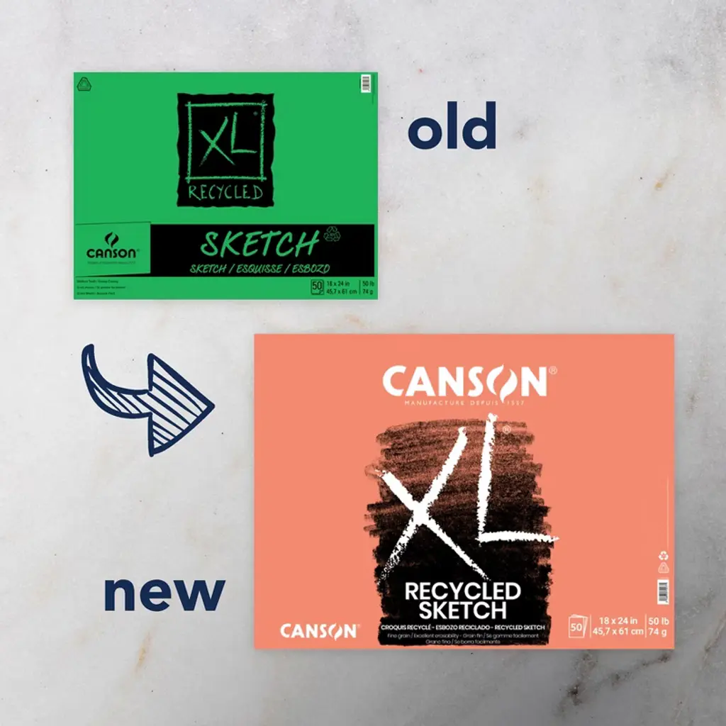 Canson XL Series Sketch Pad, Recycled, Foldover Binding, 50 Sheet, 18x24 inch, 1 Count | The Canson XL range was specifically developed to meet the needs of art students -- high sheet counts, various textures and weights, and sturdy binding at an affordable price. Students can explore their personal tastes and techniques across drawing, paint, and mixed media art forms. Artists often carry their love of XL after their coursework is complete and throughout their professional careers - it's hard to find a creative who doesn't have a Canson XL pad within arm's reach!