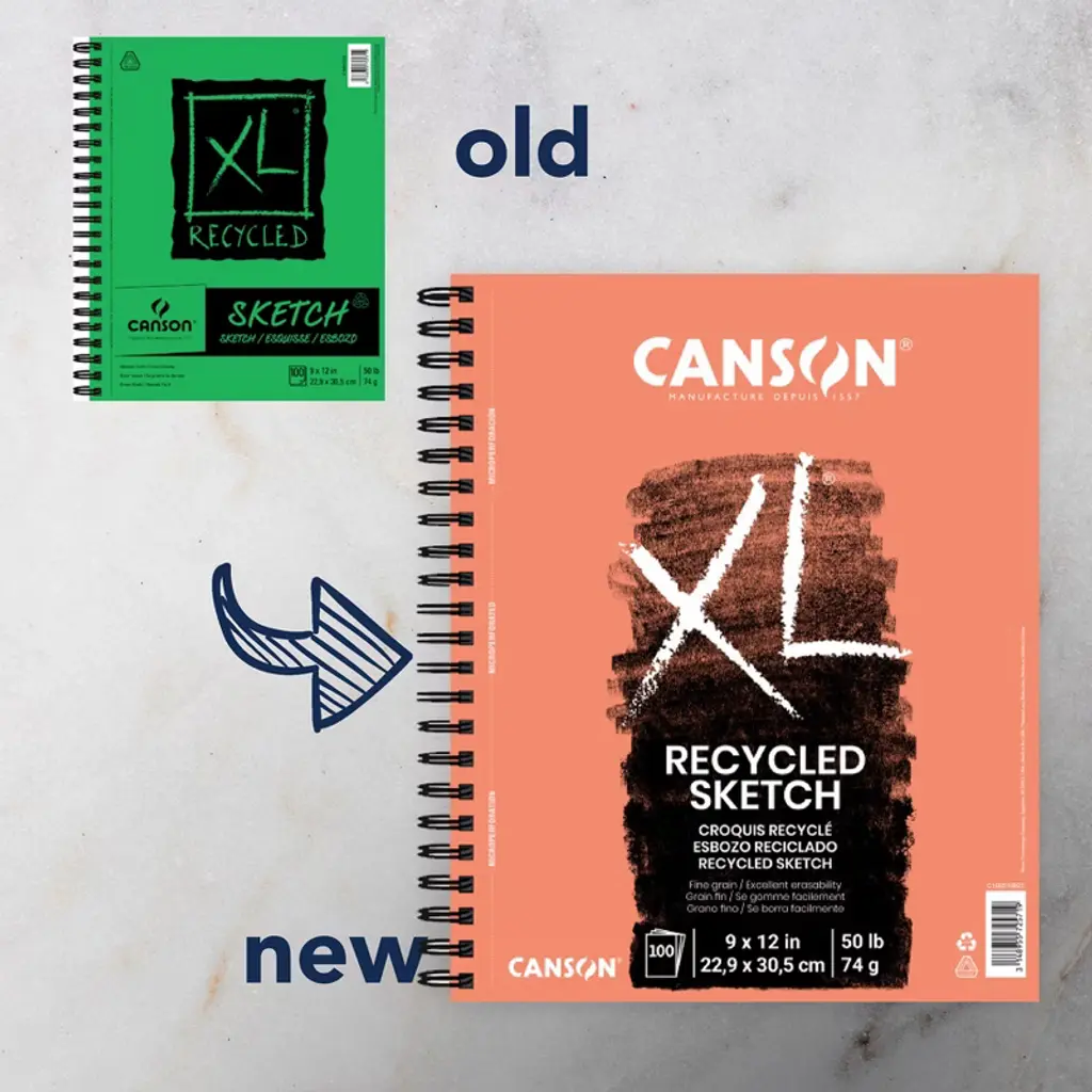 Canson XL Series Sketch Pad, Recycled, Side Wire Binding, 100 Sheet, 9x12 inch, 1 Count | The Canson XL range was specifically developed to meet the needs of art students -- high sheet counts, various textures and weights, and sturdy binding at an affordable price. Students can explore their personal tastes and techniques across drawing, paint, and mixed media art forms. Artists often carry their love of XL after their coursework is complete and throughout their professional careers - it's hard to find a creative who doesn't have a Canson XL pad within arm's reach!
