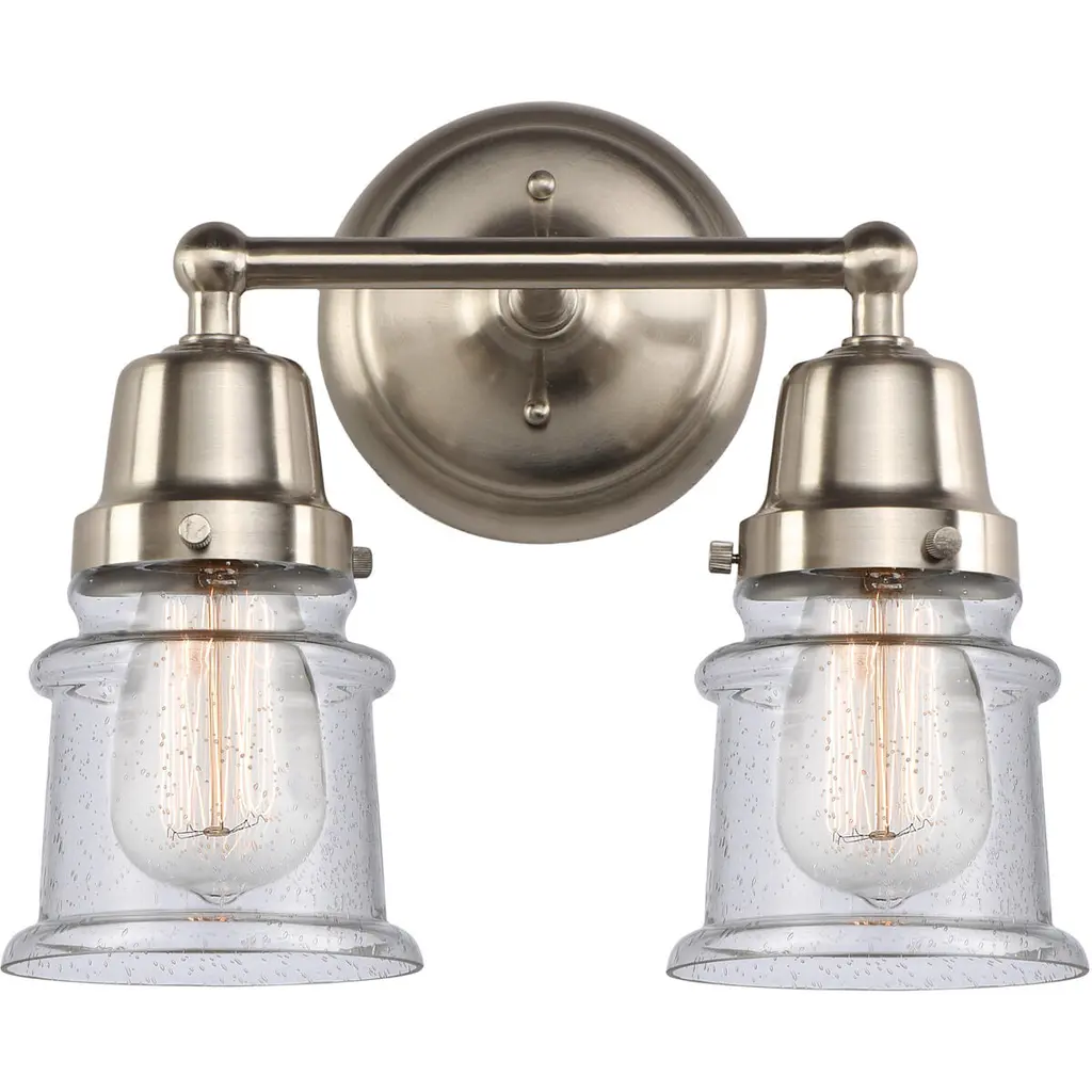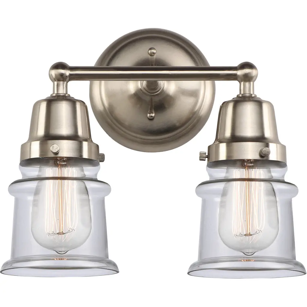 Canton 2-Light 15" Bath Vanity Light, Polished Nickel Finish, Clear Shade