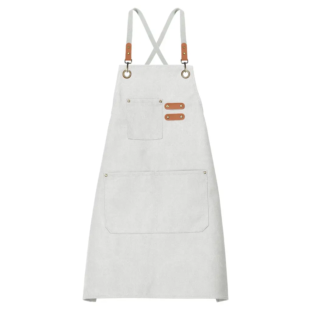 Canvas Chef Aprons 75x68cm Cross Back Cooking Apron 3 Pockets - Light Green