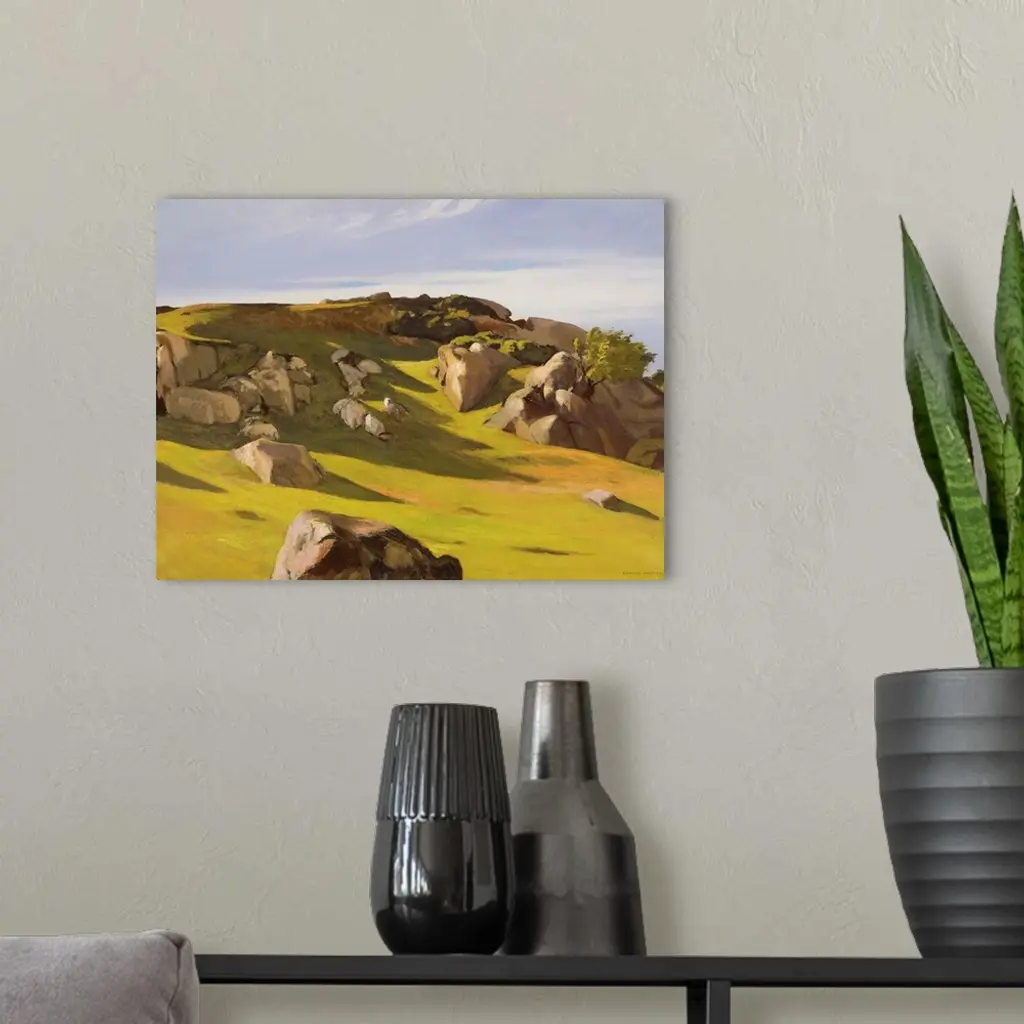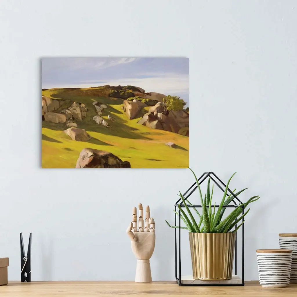 Bright landscape painting of the rocky Cape Anne located in Massachusetts, New England.