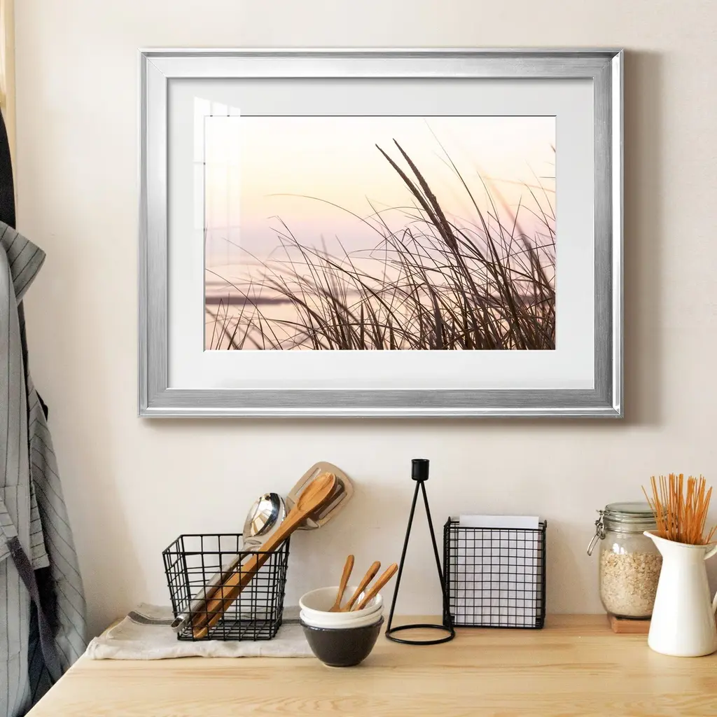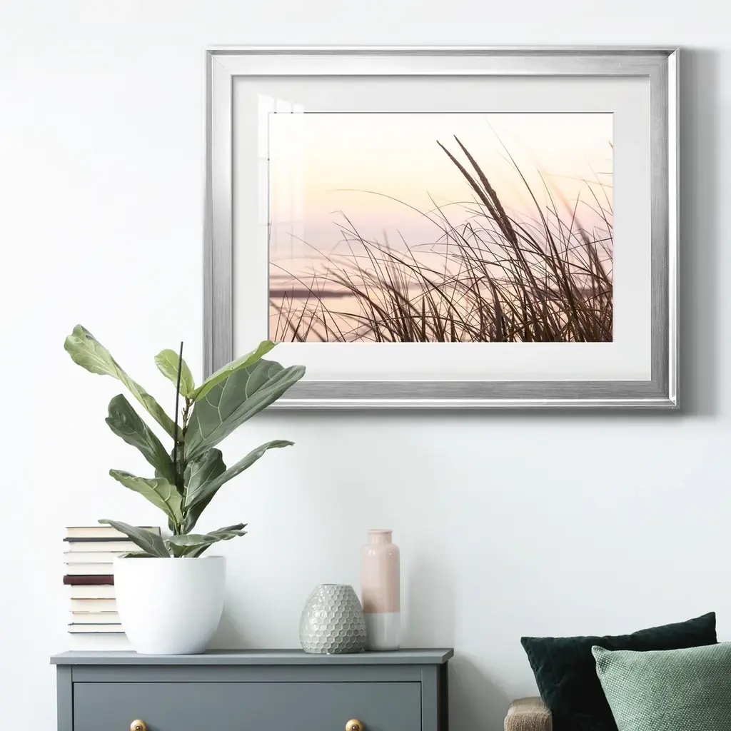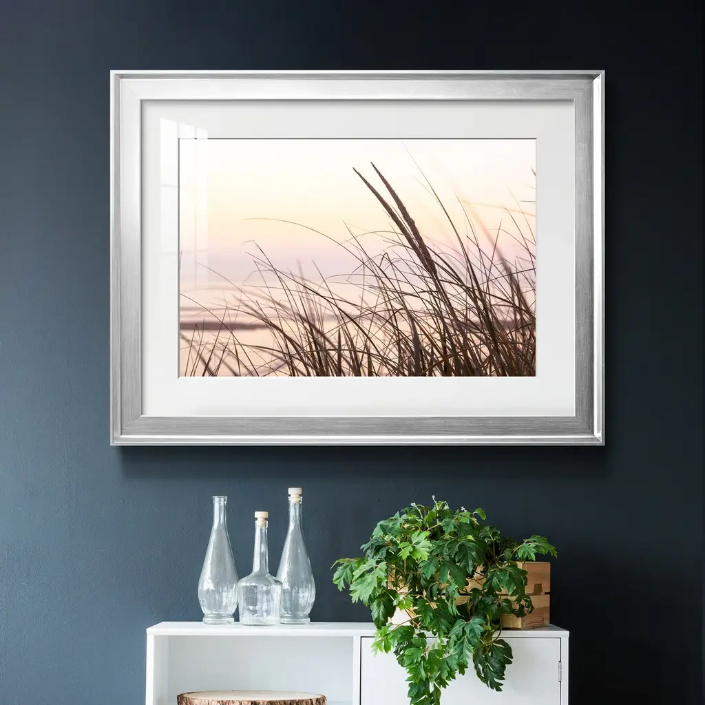 Cape Dune Morning Premium Framed Print - Ready to Hang A Premium Framed Print created to last. Framed in distressed wood and available in an array of sizes and colors Featuring a beveled a solid wood stretcher bar, each piece comes ready to hand 4 SIZES AVAILABLE 30.5''X42.5'' - Overall Size 26.5'X36.5'' - Overall Size 22''x30'' - Overall Size 18''x24'' - Overall Size Each piece is made to order. Each piece comes with hanging hardware. Made in the USA Ready to Hang Giclee Paper Print Acrylic Glass Beveled Matt Board