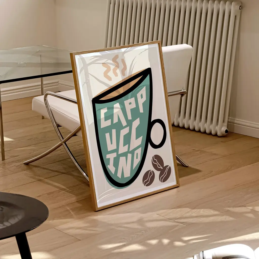 Cappuccino Art Print - A3Indulge your love for caffeine with our "Cappuccino" print. Designed to add a touch of style to your kitchen or office, this high-quality art print features a bold typography design with a coffee cup illustration to make for a perfect gift for coffee enthusiasts. All prints are digitally designed by myself and printed to order.Smooth fine art 230 gsm matte card. Printed with vivid colour and detail. Sold without a frame.
