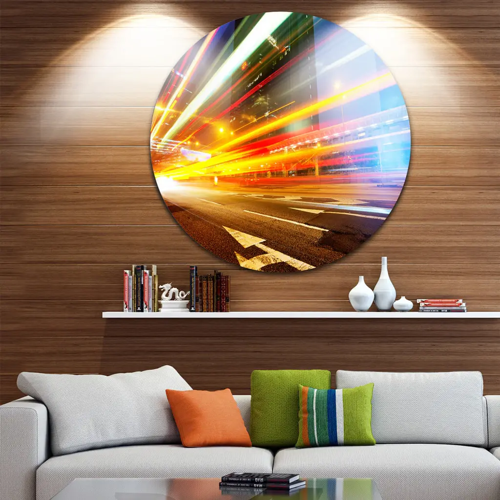 Car Light Trails In Hong Kong, Cityscape Photo Disc Metal Wall Art, 23"