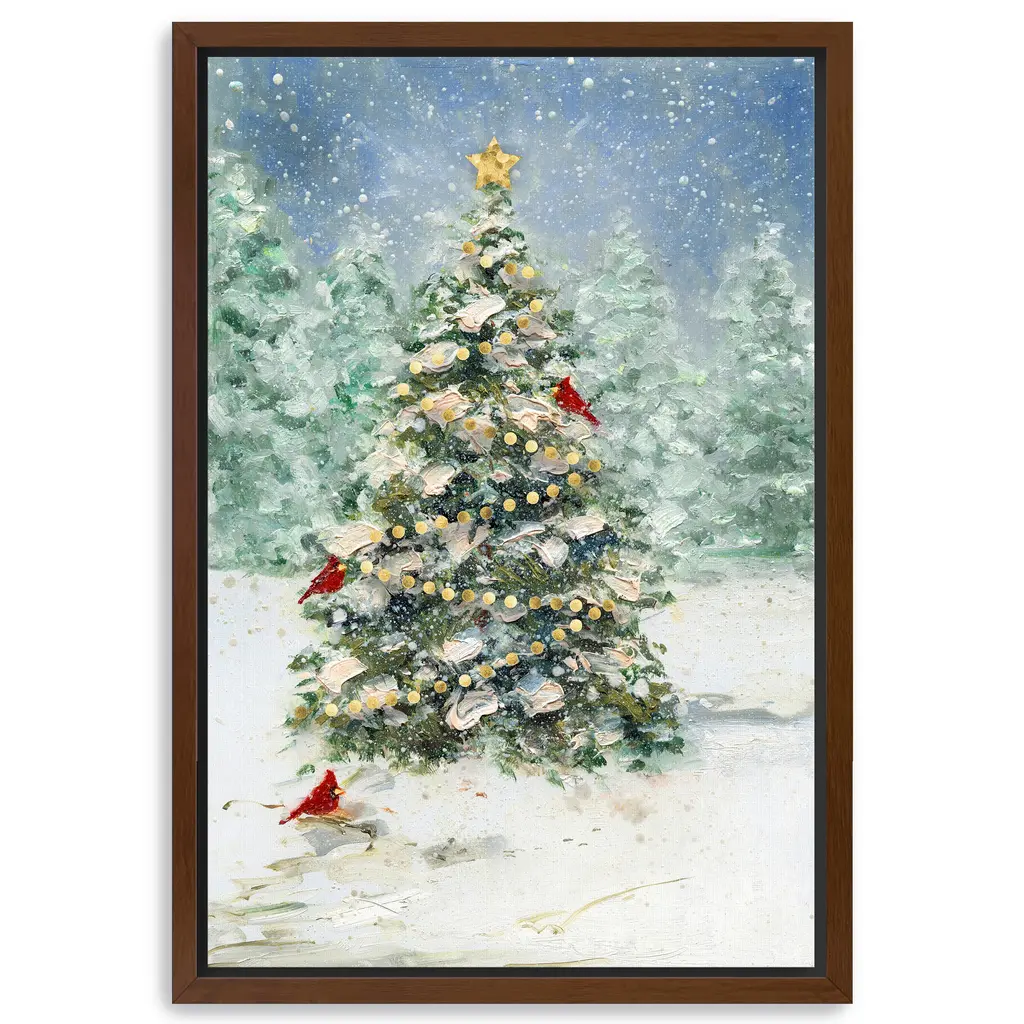 Cardinals And Christmas Canvas Giclee - Framed / Oak / 24x36
