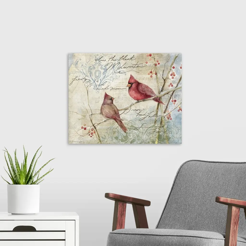 Loose, sketchbook art treatment of the beautiful cardinal is lovely for any decor