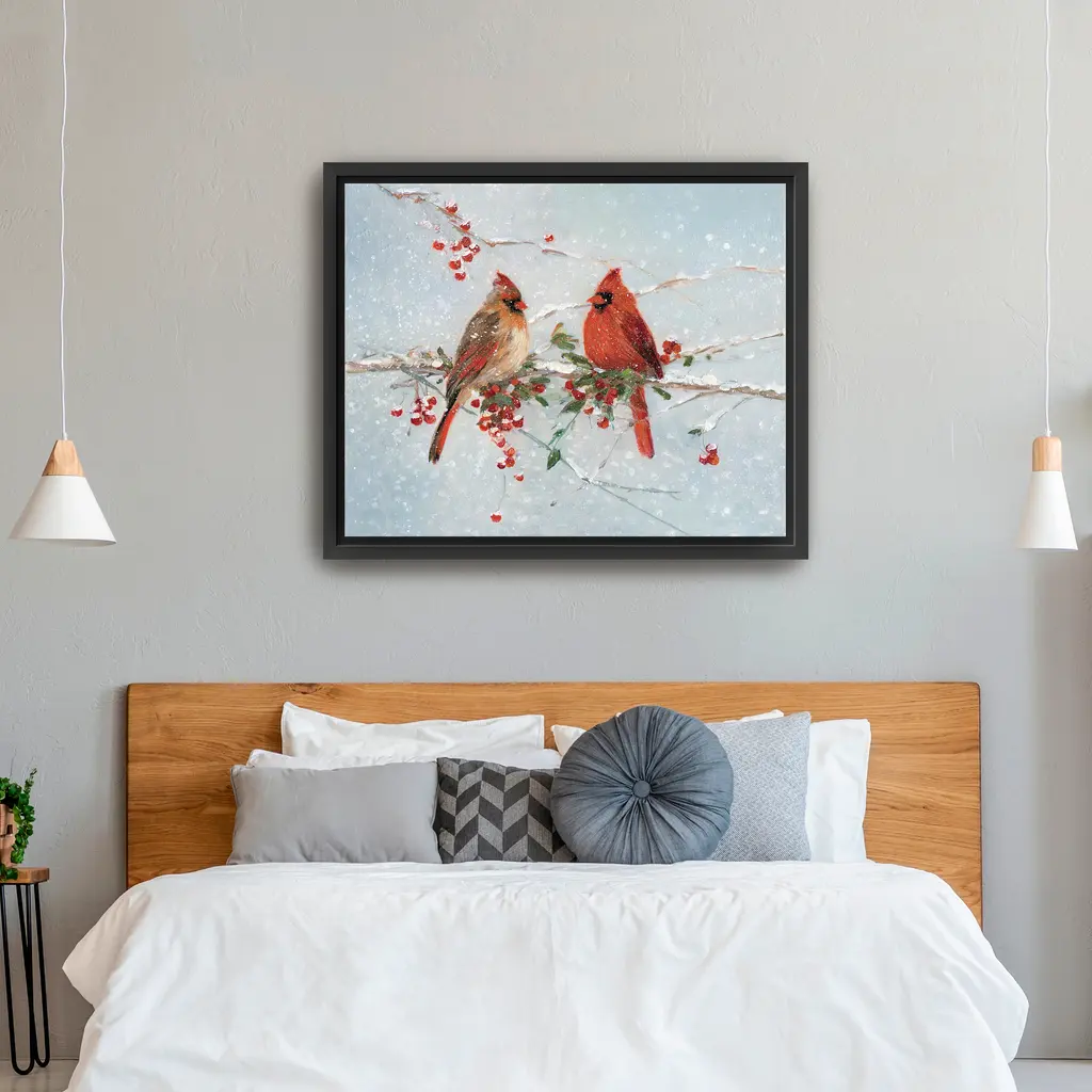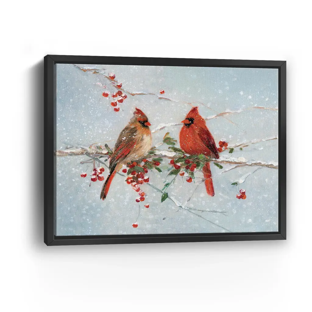 Cardinals In Winter Canvas Giclee - Framed / Dark Walnut / 30x40