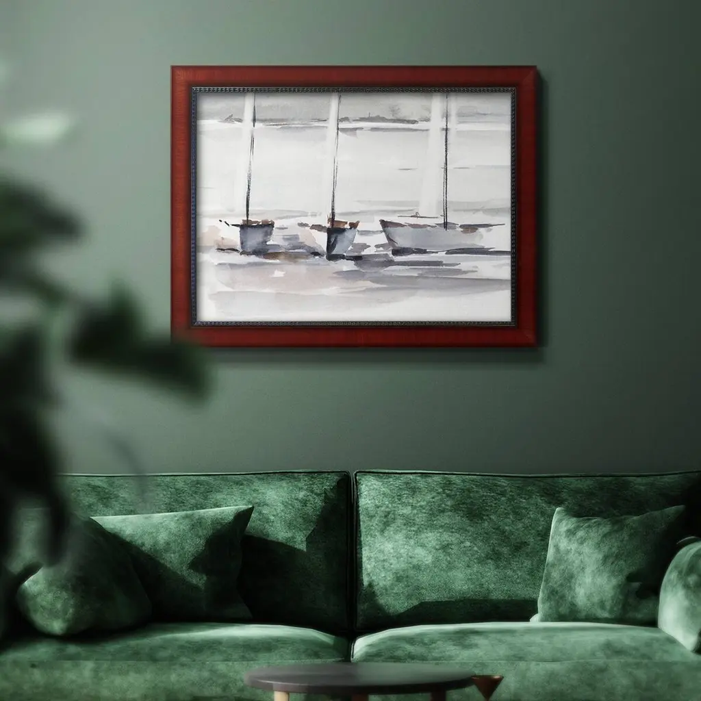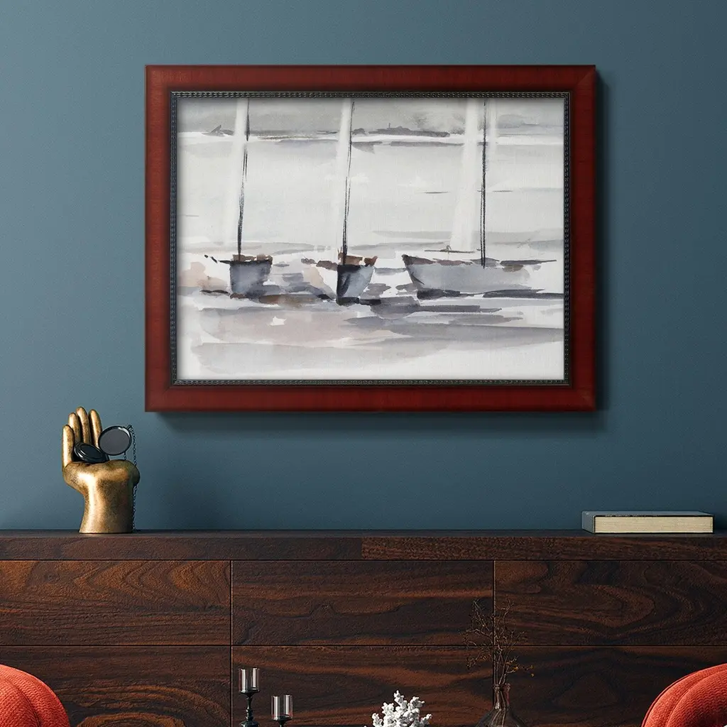 Caribbean Sails I Premium Framed Canvas- Ready to Hang A Premium Framed Canvas created to last. Framed in distressed wood and available in an array of sizes and colors Featuring a beveled a solid wood stretcher bar, each piece comes ready to hand 3 SIZES AVAILABLE 16''X20'' - Overall Size 18'X27'' - Overall Size 24''x36'' - Overall Size Each piece is made to order. Each piece comes with hanging hardware. Made in the USA Ready to Hang Giclee Paper Print Acrylic Glass Beveled Matt Board