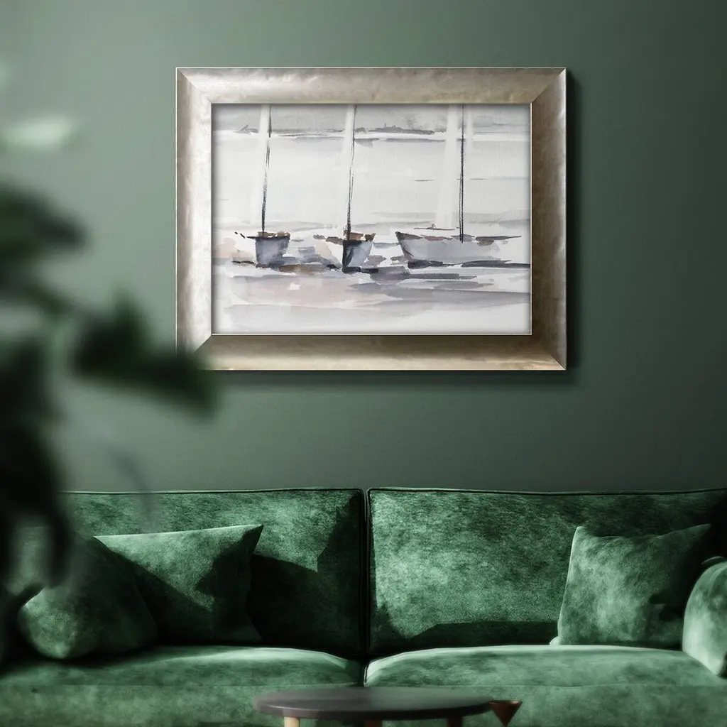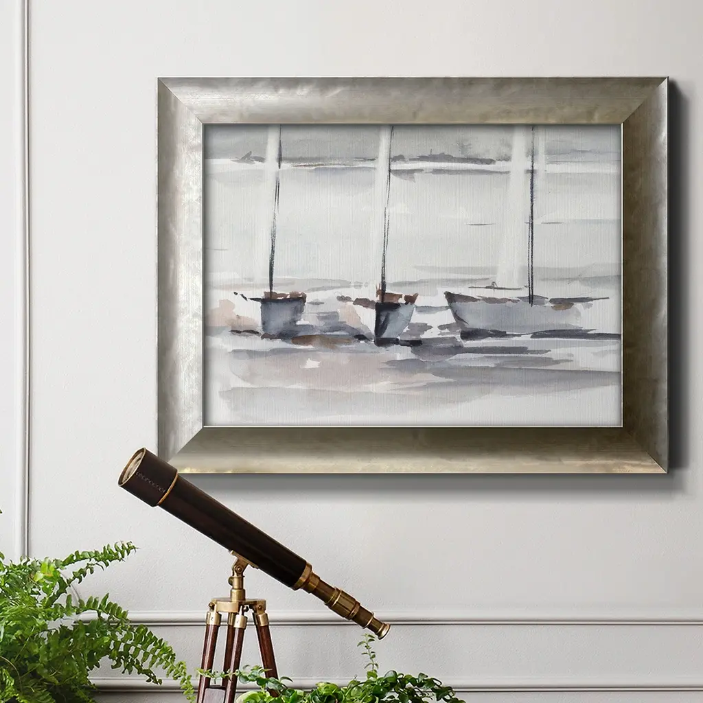 Caribbean Sails I Premium Framed Canvas- Ready to Hang A Premium Framed Canvas created to last. Framed in distressed wood and available in an array of sizes and colors Featuring a beveled a solid wood stretcher bar, each piece comes ready to hand 3 SIZES AVAILABLE 16''X20'' - Overall Size 18'X27'' - Overall Size 24''x36'' - Overall Size Each piece is made to order. Each piece comes with hanging hardware. Made in the USA Ready to Hang Giclee Paper Print Acrylic Glass Beveled Matt Board