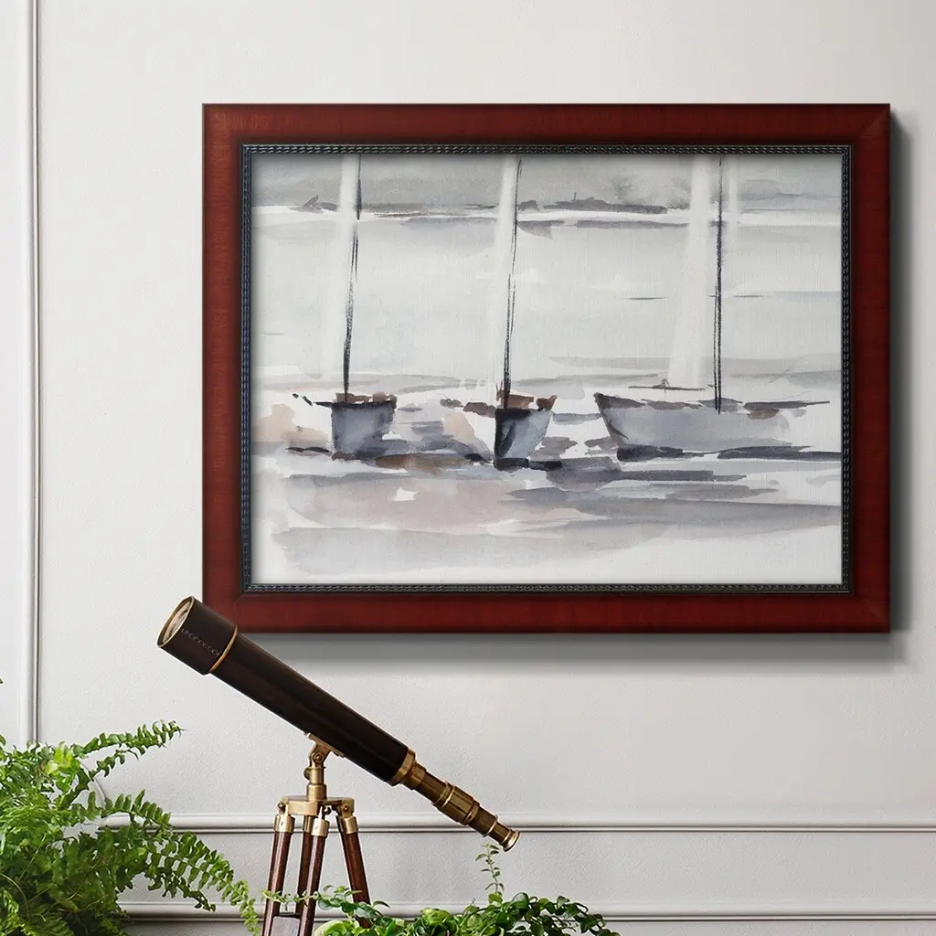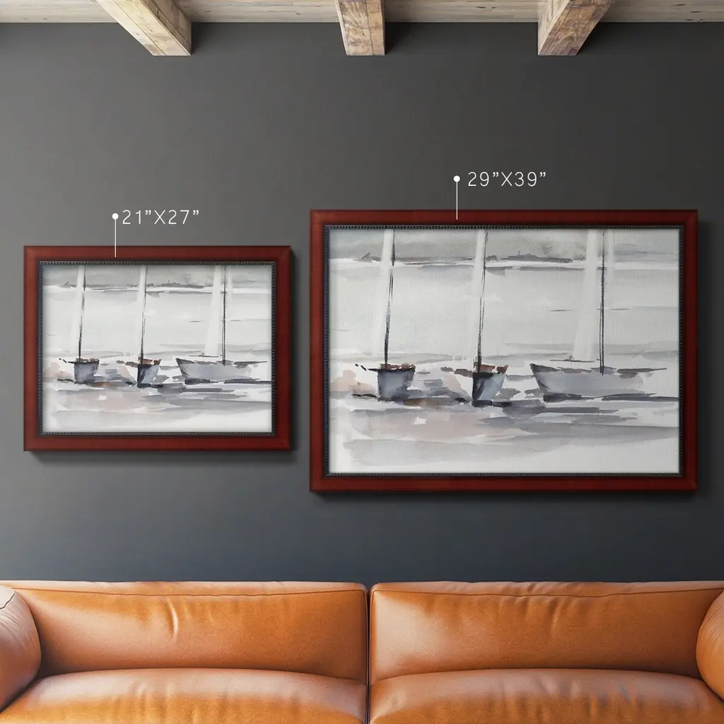 Caribbean Sails I Premium Framed Canvas- Ready to Hang A Premium Framed Canvas created to last. Framed in distressed wood and available in an array of sizes and colors Featuring a beveled a solid wood stretcher bar, each piece comes ready to hand 3 SIZES AVAILABLE 16''X20'' - Overall Size 18'X27'' - Overall Size 24''x36'' - Overall Size Each piece is made to order. Each piece comes with hanging hardware. Made in the USA Ready to Hang Giclee Paper Print Acrylic Glass Beveled Matt Board