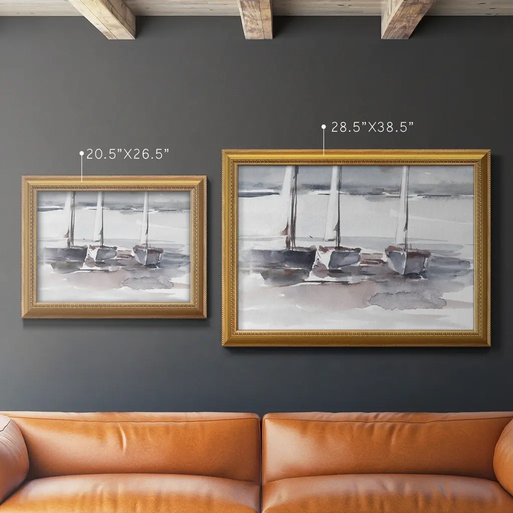 Caribbean Sails II Premium Framed Canvas- Ready to Hang A Premium Framed Canvas created to last. Framed in distressed wood and available in an array of sizes and colors Featuring a beveled a solid wood stretcher bar, each piece comes ready to hand 3 SIZES AVAILABLE 16''X20'' - Overall Size 18'X27'' - Overall Size 24''x36'' - Overall Size Each piece is made to order. Each piece comes with hanging hardware. Made in the USA Ready to Hang Giclee Paper Print Acrylic Glass Beveled Matt Board