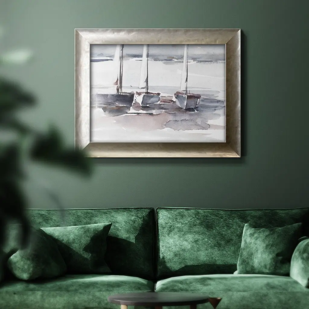 Caribbean Sails II Premium Framed Canvas- Ready to Hang A Premium Framed Canvas created to last. Framed in distressed wood and available in an array of sizes and colors Featuring a beveled a solid wood stretcher bar, each piece comes ready to hand 3 SIZES AVAILABLE 16''X20'' - Overall Size 18'X27'' - Overall Size 24''x36'' - Overall Size Each piece is made to order. Each piece comes with hanging hardware. Made in the USA Ready to Hang Giclee Paper Print Acrylic Glass Beveled Matt Board