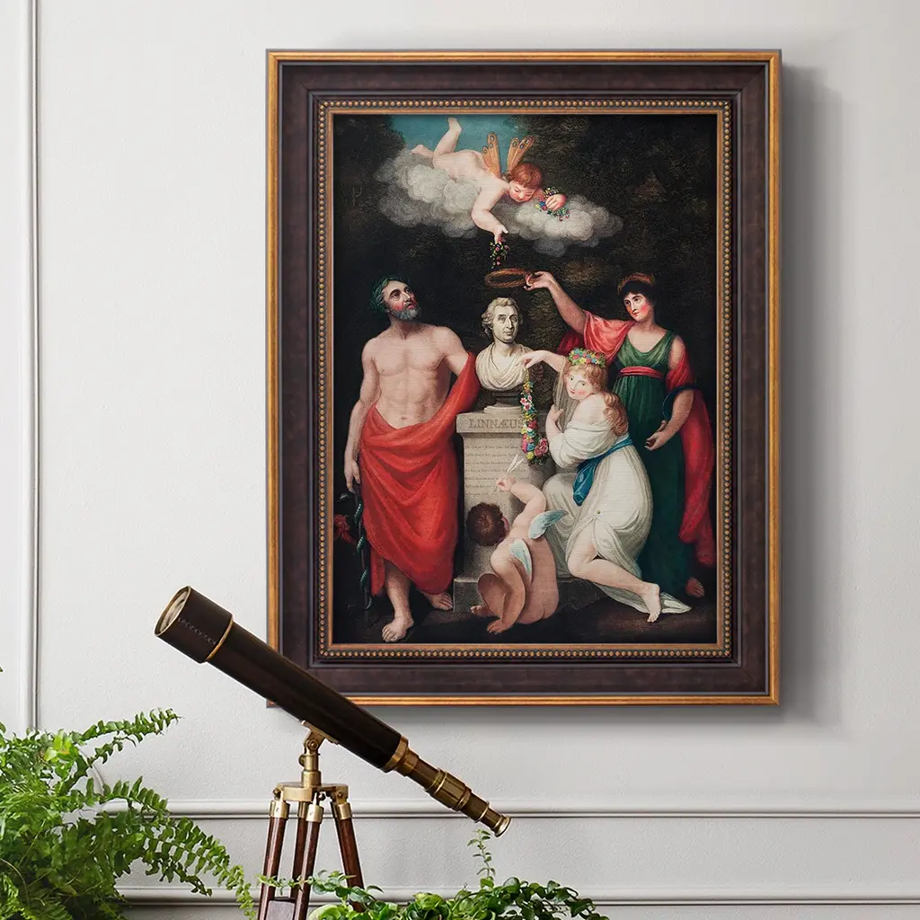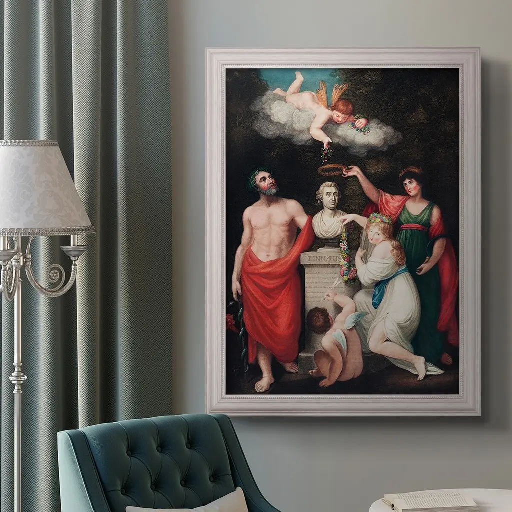 Carl Linnaeus Premium Framed Canvas- Ready to Hang A Premium Framed Canvas created to last. Framed in distressed wood and available in an array of sizes and colors Featuring a beveled a solid wood stretcher bar, each piece comes ready to hand 3 SIZES AVAILABLE 16''X20'' - Overall Size 18'X27'' - Overall Size 24''x36'' - Overall Size Each piece is made to order. Each piece comes with hanging hardware. Made in the USA Ready to Hang Giclee Paper Print Acrylic Glass Beveled Matt Board