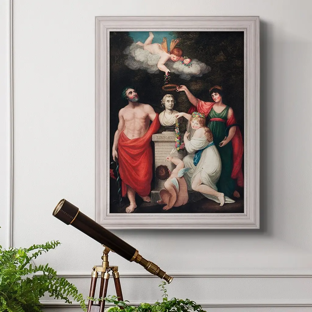 Carl Linnaeus Premium Framed Canvas- Ready to Hang A Premium Framed Canvas created to last. Framed in distressed wood and available in an array of sizes and colors Featuring a beveled a solid wood stretcher bar, each piece comes ready to hand 3 SIZES AVAILABLE 16''X20'' - Overall Size 18'X27'' - Overall Size 24''x36'' - Overall Size Each piece is made to order. Each piece comes with hanging hardware. Made in the USA Ready to Hang Giclee Paper Print Acrylic Glass Beveled Matt Board