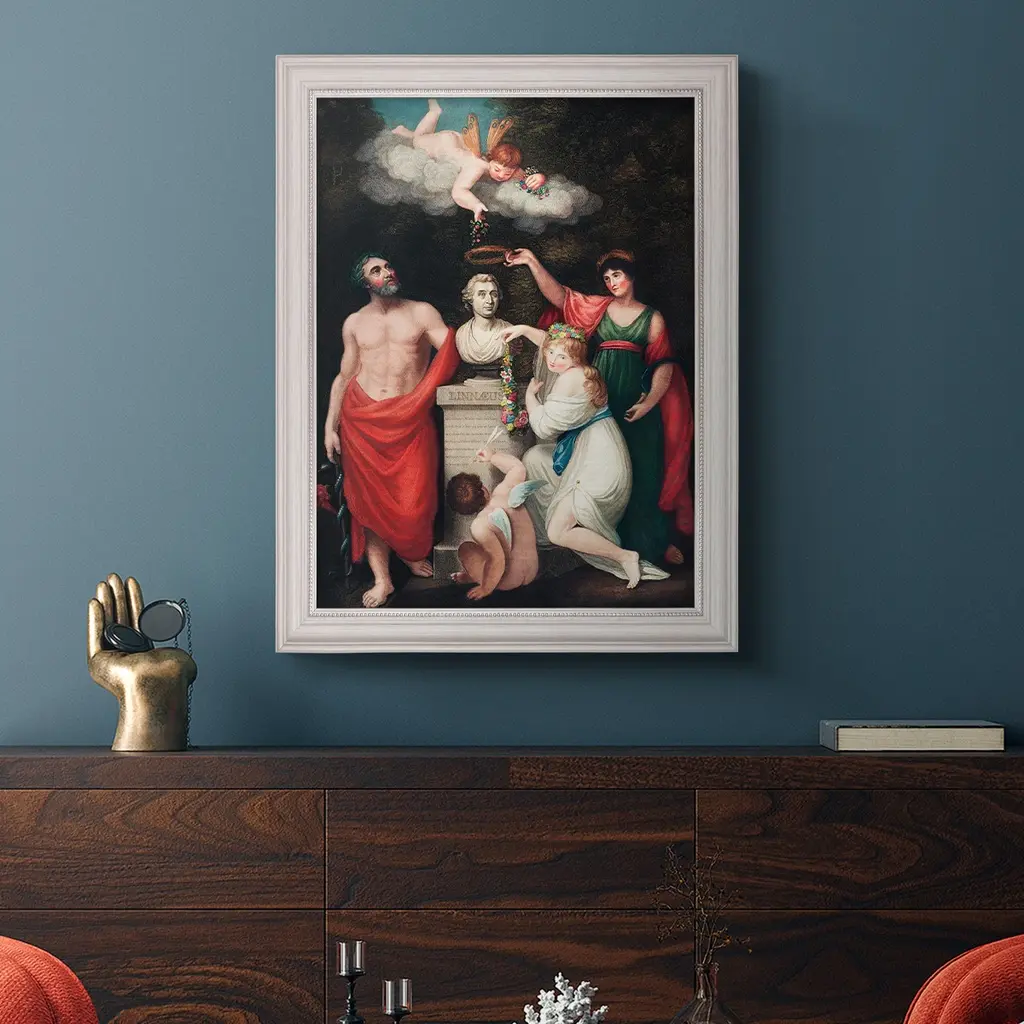 Carl Linnaeus Premium Framed Canvas- Ready to Hang A Premium Framed Canvas created to last. Framed in distressed wood and available in an array of sizes and colors Featuring a beveled a solid wood stretcher bar, each piece comes ready to hand 3 SIZES AVAILABLE 16''X20'' - Overall Size 18'X27'' - Overall Size 24''x36'' - Overall Size Each piece is made to order. Each piece comes with hanging hardware. Made in the USA Ready to Hang Giclee Paper Print Acrylic Glass Beveled Matt Board