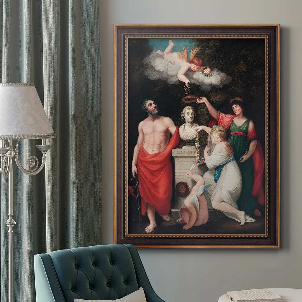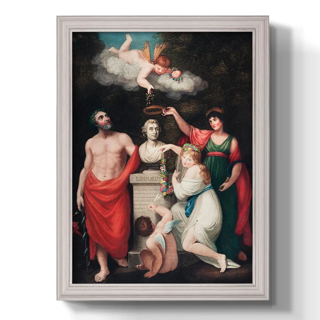 Carl Linnaeus Premium Framed Canvas- Ready to Hang A Premium Framed Canvas created to last. Framed in distressed wood and available in an array of sizes and colors Featuring a beveled a solid wood stretcher bar, each piece comes ready to hand 3 SIZES AVAILABLE 16''X20'' - Overall Size 18'X27'' - Overall Size 24''x36'' - Overall Size Each piece is made to order. Each piece comes with hanging hardware. Made in the USA Ready to Hang Giclee Paper Print Acrylic Glass Beveled Matt Board