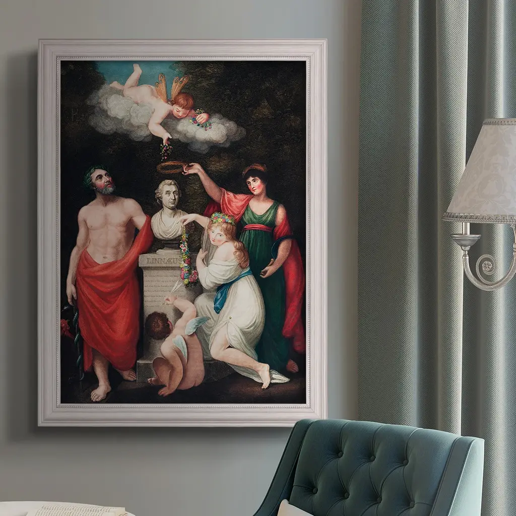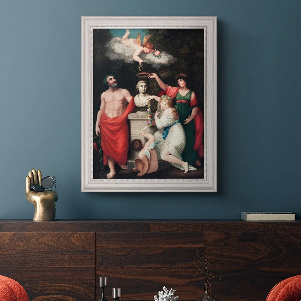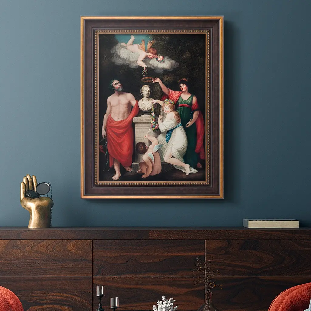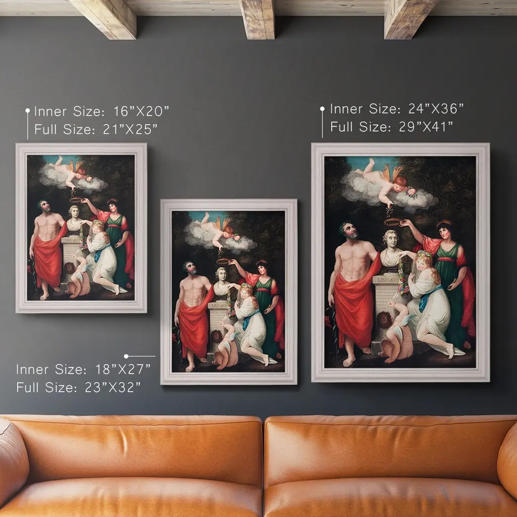 Carl Linnaeus Premium Framed Canvas- Ready to Hang A Premium Framed Canvas created to last. Framed in distressed wood and available in an array of sizes and colors Featuring a beveled a solid wood stretcher bar, each piece comes ready to hand 3 SIZES AVAILABLE 16''X20'' - Overall Size 18'X27'' - Overall Size 24''x36'' - Overall Size Each piece is made to order. Each piece comes with hanging hardware. Made in the USA Ready to Hang Giclee Paper Print Acrylic Glass Beveled Matt Board