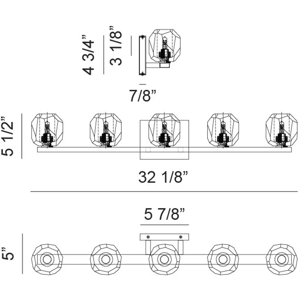 Carleton 5 Light 32.13 Inch Matte Black Bath Vanity Light Wall Light