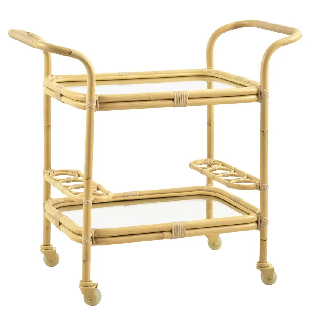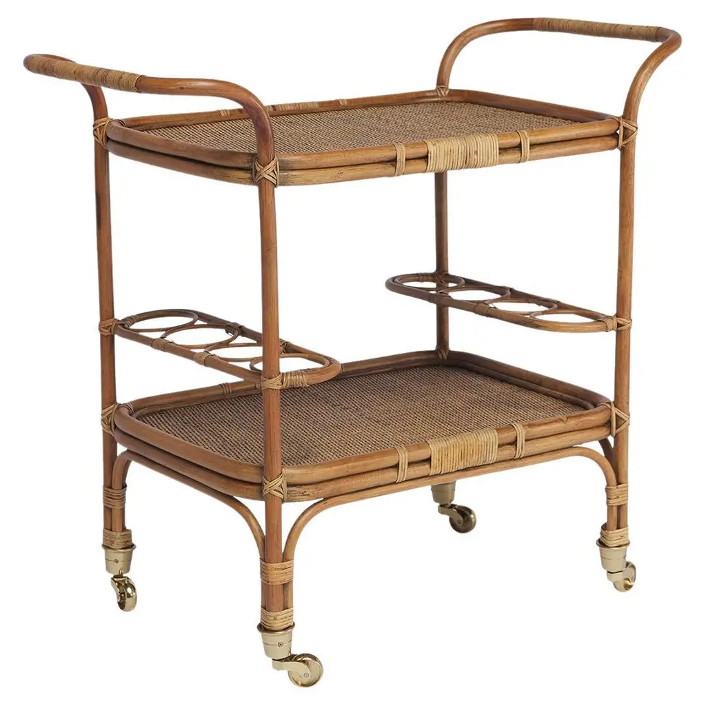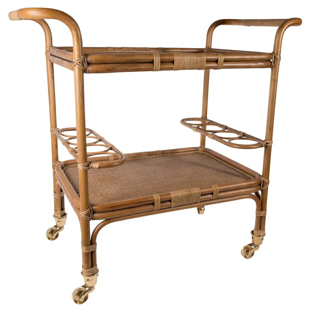 The Carlo Bar Trolley sparks both conversations and celebrations. Inspired by sketches from the 1950s and 1960s, this classic bar cart can be rolled out of sight, but you won't want to hide it. It is handcrafted from natural rattan and is built to last as long as its timeless design. *Digital swatches are not always color accurate.