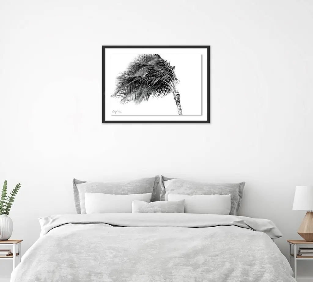You can almost hear the wind rustling among the palm leaves in this black-and-white photo by Carly Tabak. The giclée print arrives framed and ready to hang.