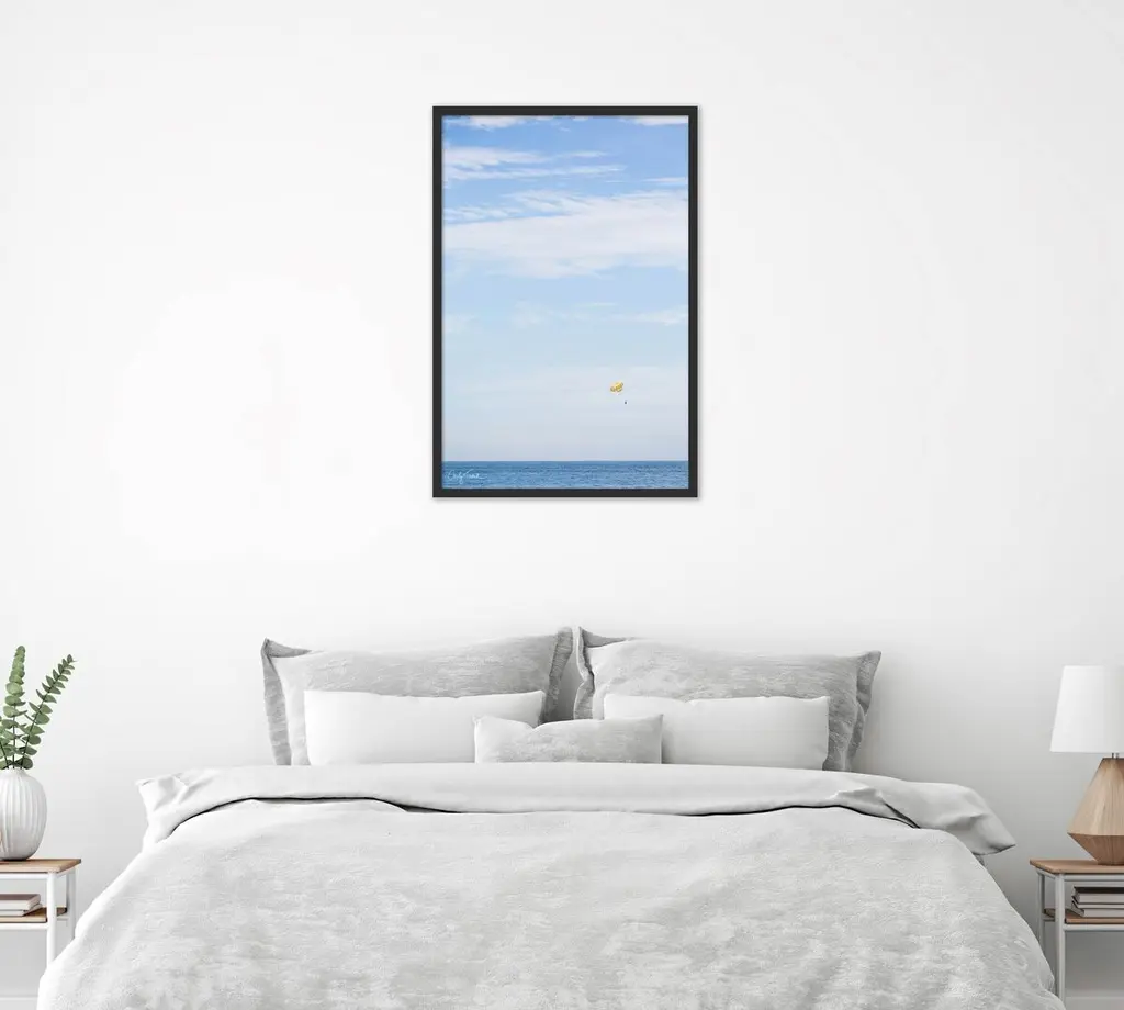 A parachutist seemingly alone above the vast Pacific Ocean gives this photograph by Carly Tabak a sense of wonder. The giclée print arrives framed and ready to hang.Following a lifelong passion for photography, Carly Tabak has become an acclaimed landscape photographer. Based in the San Francisco Bay Area and an avid explorer, Carly creates photographs that embody the elements and energy of her unique experiences.