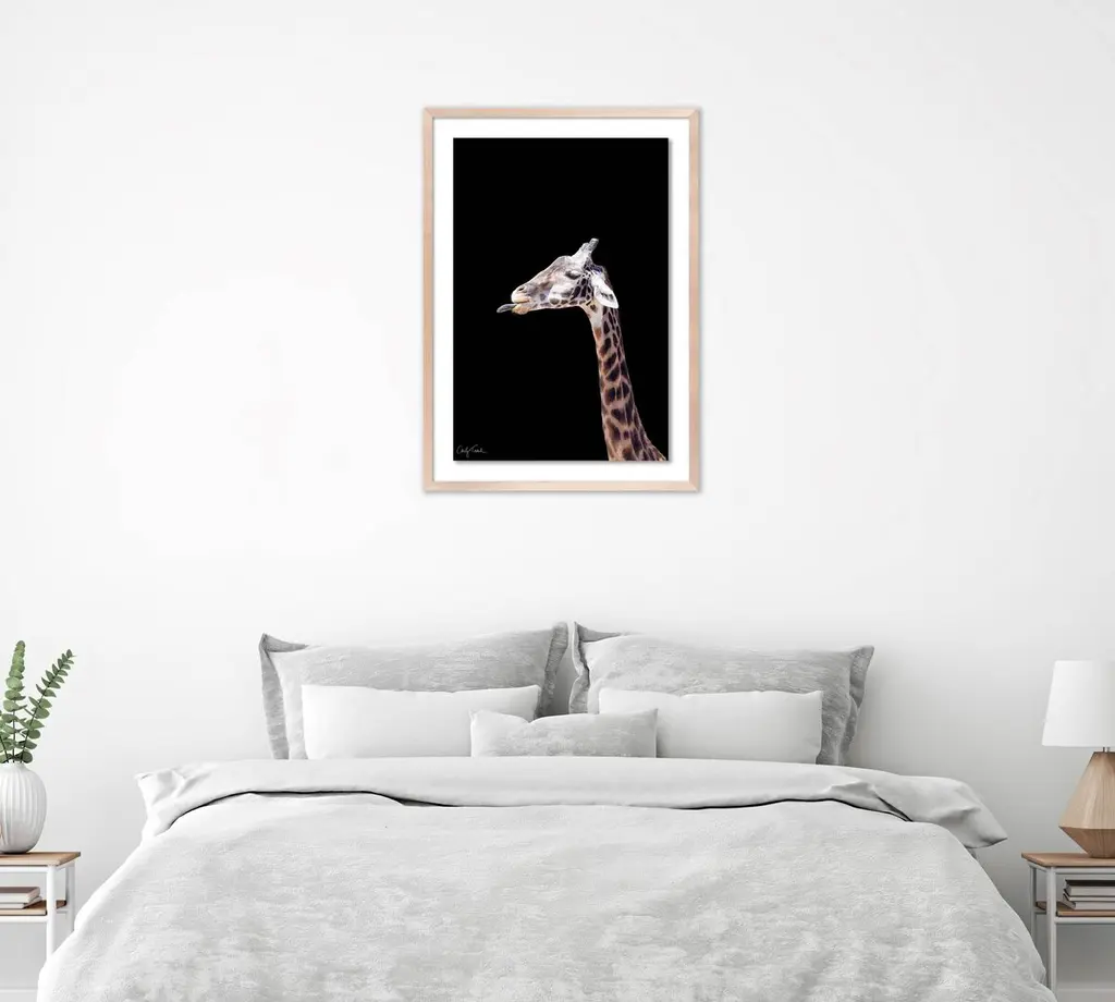 It's not often one has the opportunity to get up close and personal with a giraffe. But photographer Carly Tabak did, and now you can too. The giclée print arrives framed and ready to hang.Following a lifelong passion for photography, Carly Tabak has become an acclaimed landscape photographer. Based in the San Francisco Bay Area and an avid explorer, Carly creates photographs that embody the elements and energy of her unique experiences.