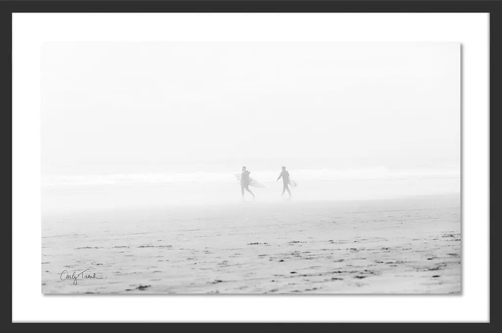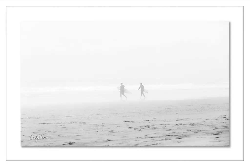 Carly Tabak's photograph of two surfers walking toward the waves amid a silvery fog makes a serenely beautiful addition to a bedroom, a living area, or almost any other room. It arrives framed and ready to hang.Following a lifelong passion for photography, Carly Tabak has become an established and acclaimed landscape photographer. Based in the San Francisco Bay Area, Carly's work is travel inspired. Her photographs embody the elements and energy from where they are sourced. As an avid explorer, each piece of Carly's collection is derived from her unique experiences. Carly's mission is to create warm, inviting, versatile works of art to complement and beautify any space in your home.