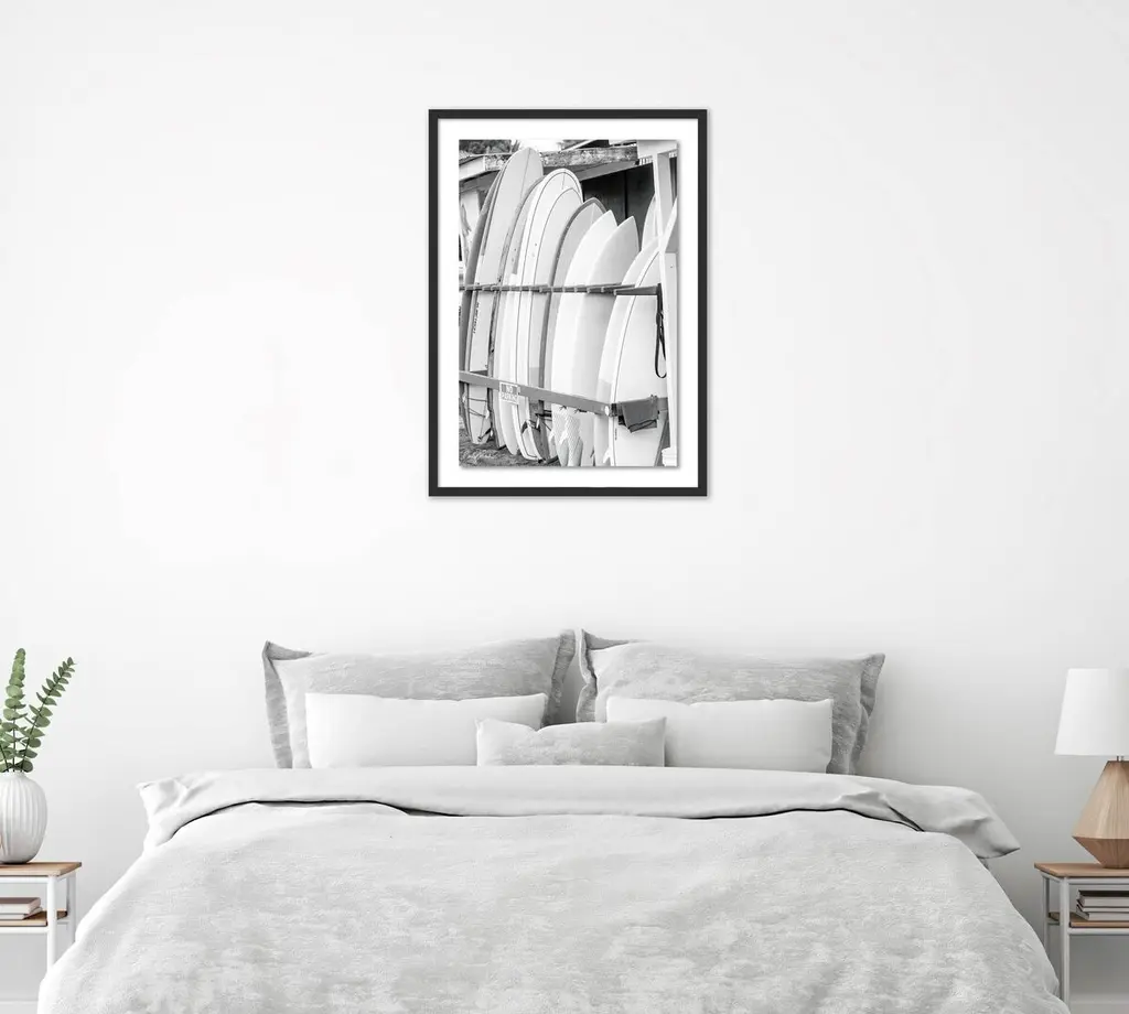 Carly Tabak's black-and-white photograph of surfboards lined up on a beach lets you relish the joys of summer year-round. The giclée print arrives framed and ready to hang.Following a lifelong passion for photography, Carly Tabak has become an acclaimed landscape photographer. Based in the San Francisco Bay Area and an avid explorer, Carly creates photographs that embody the elements and energy of her unique experiences.