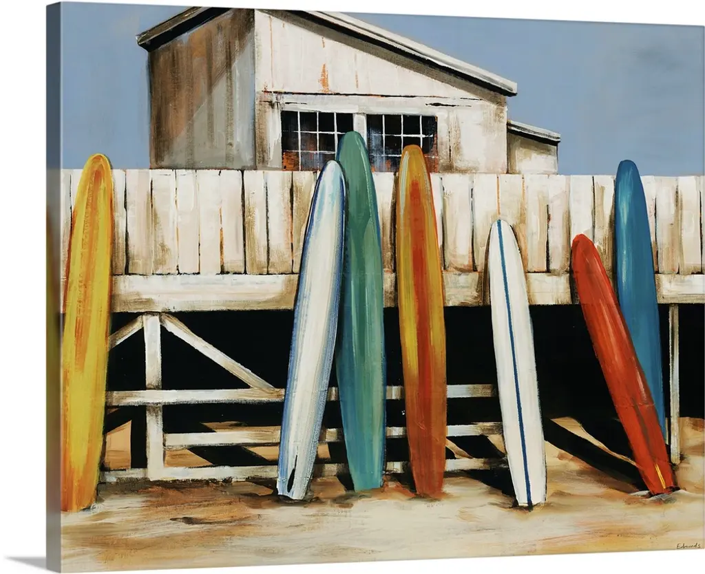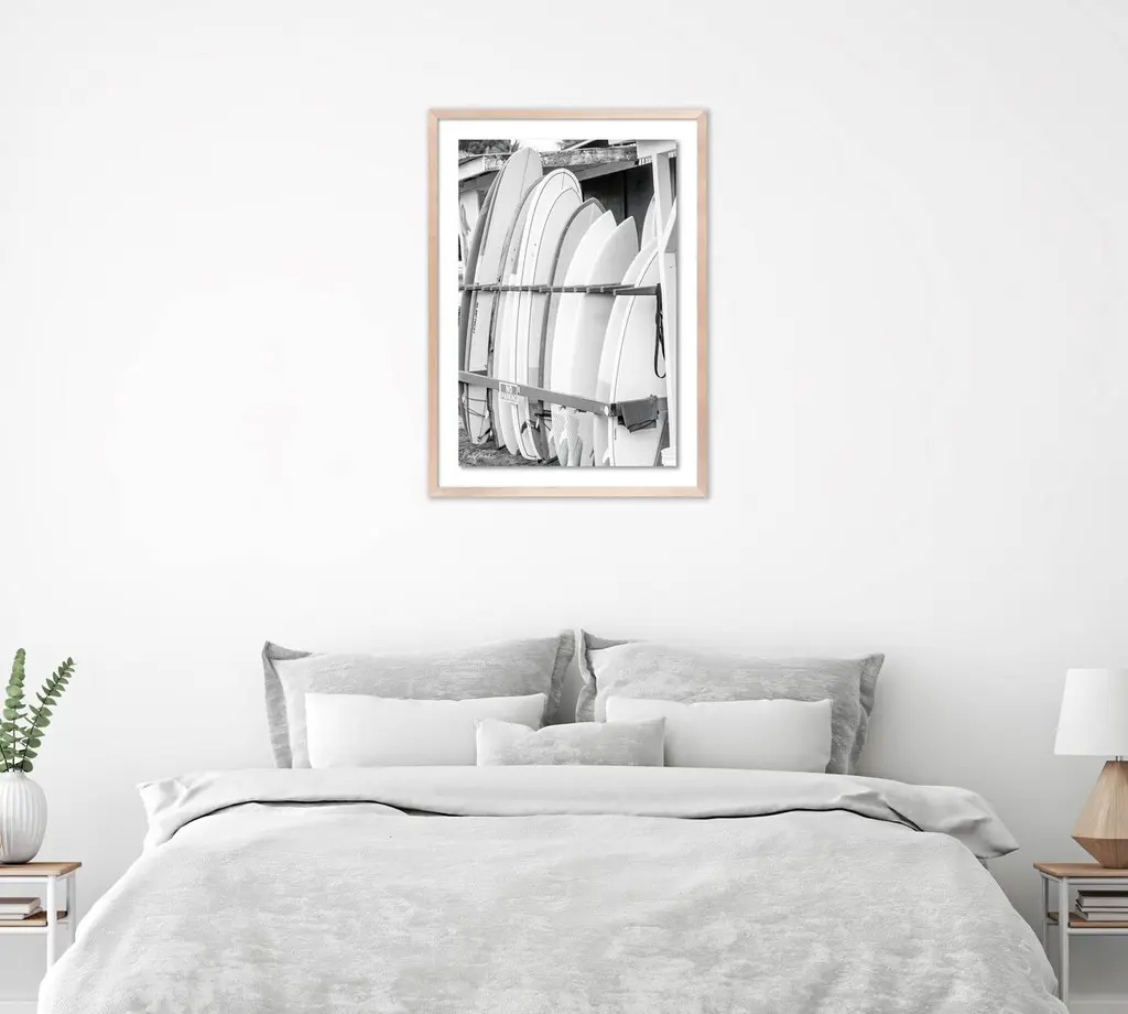Carly Tabak's black-and-white photograph of surfboards lined up on a beach lets you relish the joys of summer year-round. The giclée print arrives framed and ready to hang.Following a lifelong passion for photography, Carly Tabak has become an acclaimed landscape photographer. Based in the San Francisco Bay Area and an avid explorer, Carly creates photographs that embody the elements and energy of her unique experiences.