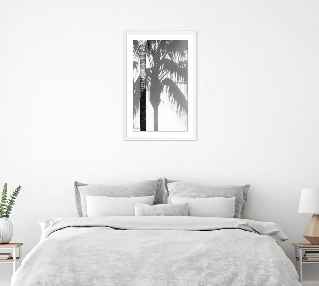 Shot in Santa Barbara, Carly Tabak's photograph of a palm tree and its shadow is a study in tonal serenity and organic elegance. The print arrives framed and ready to hang.Following a lifelong passion for photography, Carly Tabak has become an established and acclaimed landscape photographer. Based in the San Francisco Bay Area, Carly's work is travel inspired. Her photographs embody the elements and energy from where they are sourced. As an avid explorer, each piece of Carly's collection is derived from her unique experiences. Carly's mission is to create warm, inviting, versatile works of art to complement and beautify any space in your home.