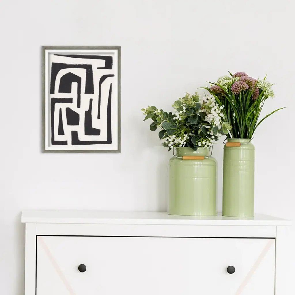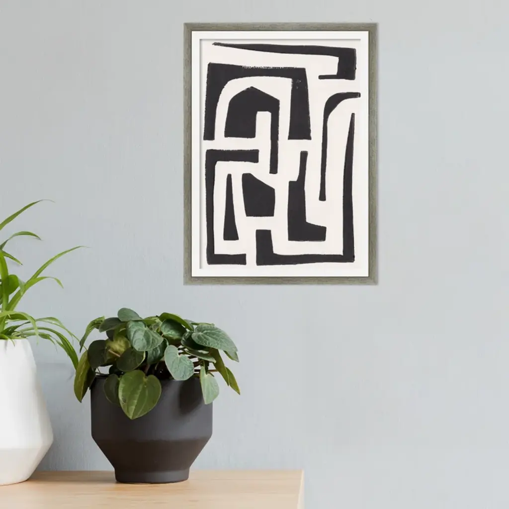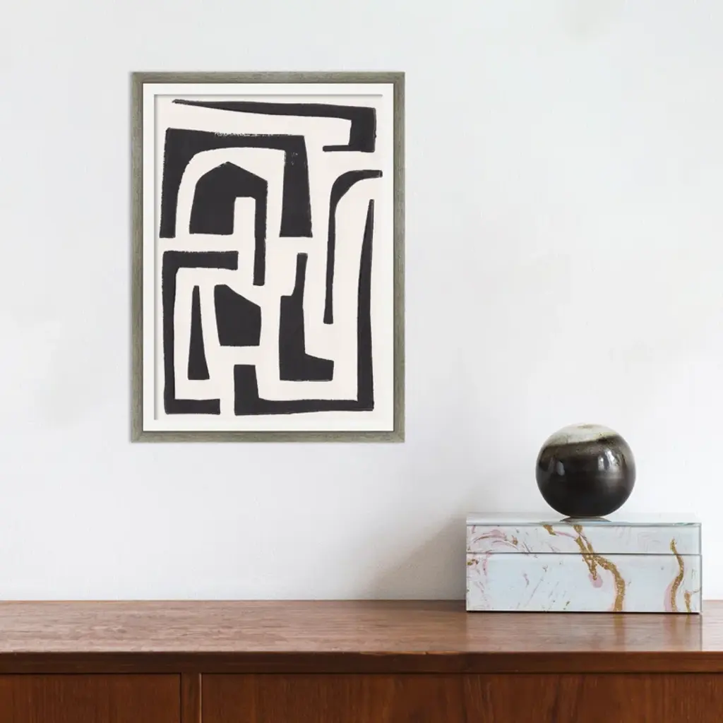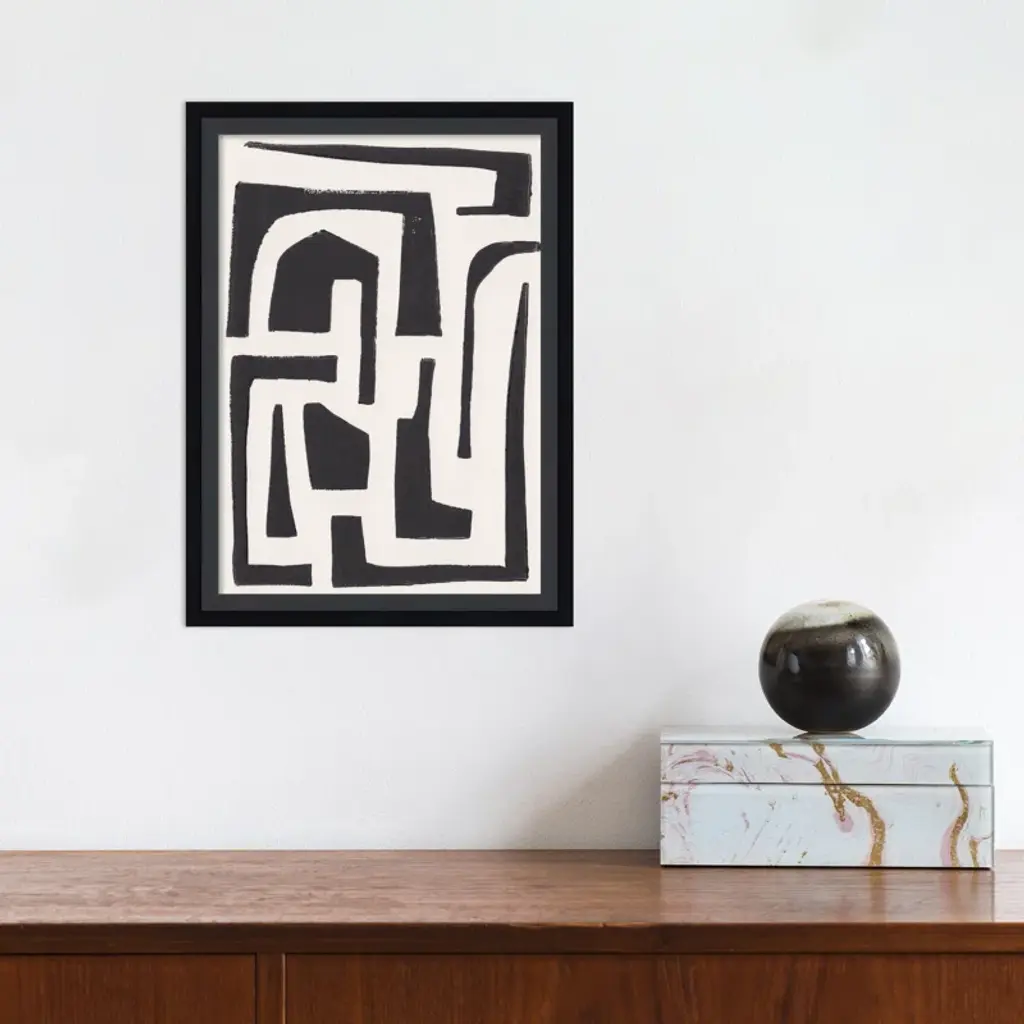 Art description: This abstract artwork captures the essence of a modern city neighborhood through its use of graphic shapes and monochrome colors. The block print style adds a classic touch to the overall contemporary feel, resulting in a neutral yet striking piece that is both timeless and current. This framed art print was created by Carmilita and printed in Madison, WI. The print is giclee printed using fade-resistant inks for picture-perfect detail and incredible depth of color and finished with a 100% wood frame. Individually made using traditional custom framing techniques, it has the quality you would expect from your local frame shop. Features: Custom artwork details: Neighborhood by Carmilita. 100% Wood frame details: The art is framed in the frame which measures 1 in. wide and stands 1.75 in. off the wall. Quality and authenticity: Prints are giclee printed using fade-resistant inks for picture-perfect detail and incredible depth of color. They are protected with a shatterproof sheet of gallery-quality acrylic, which resists UV rays and light damage better than traditional glass. The artwork is authentically licensed. Protective backing: Premium paper prints are permanently adhered to a rigid backer board to prevent rippling over time. Hassle-free hanging: Ready to hang for easy installation. All framed prints have a durable hanging wire attached to the back and a hanging hook and nail. Assembled in the USA: Each piece is assembled to order in Madison, WI USA. For home or commercial use: Because of our attention to detail and focus on artistry, architects, interior designers, and homeowners alike choose this framed art print to create beautiful living spaces.