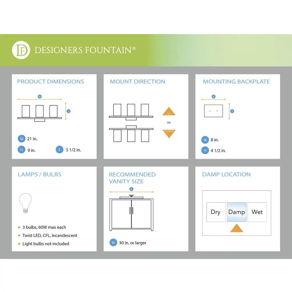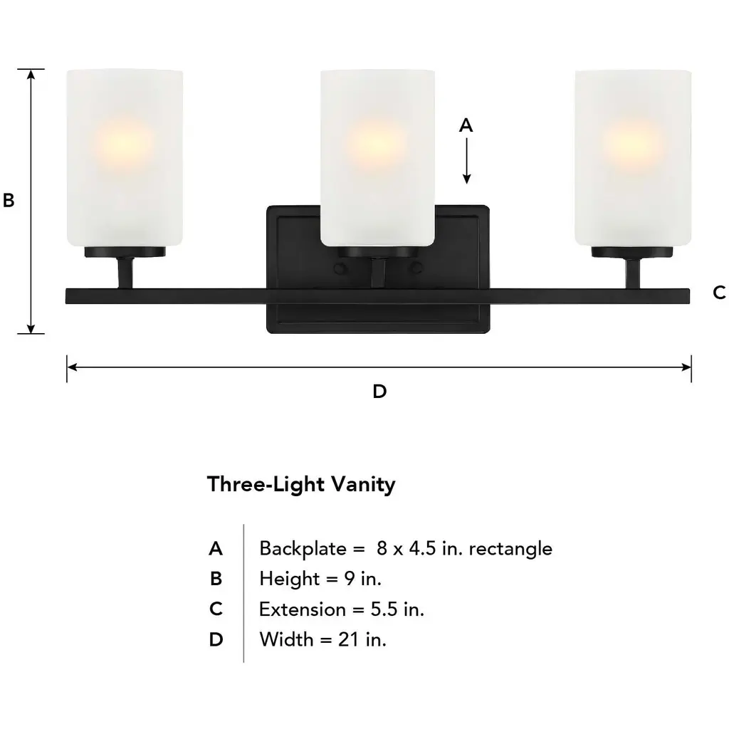 Carmine 3 Light 21 Inch Matte Black Vanity Light Wall Light