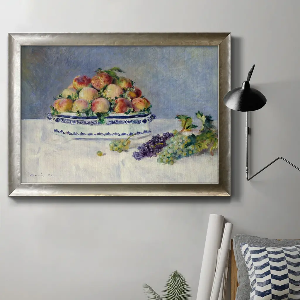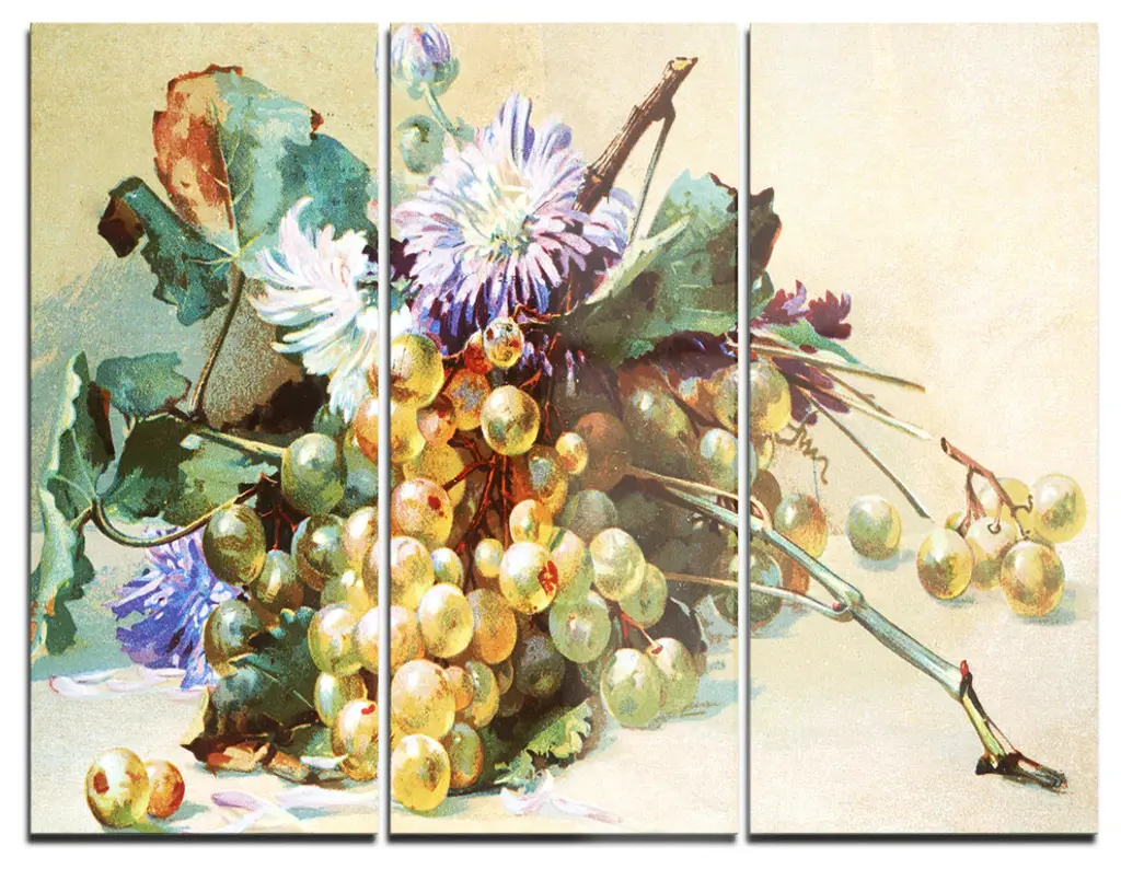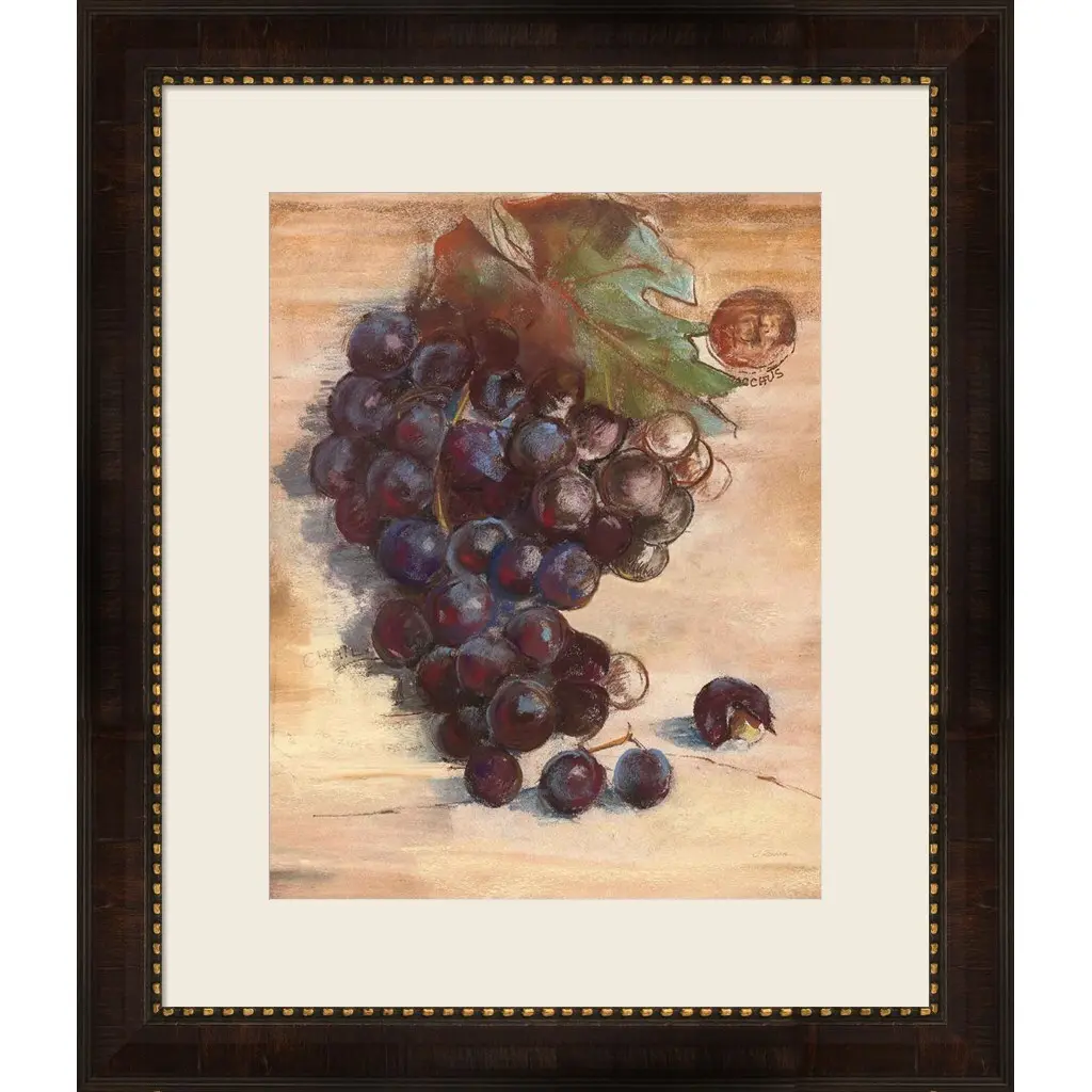 Grape Harvest III No Label by Carol Rowan is a high quality piece of framed artwork. The finished size of this piece is 20" X 23". It has a Rustic Weathered Chocolate Brown with Antique Silver Accent frame, is single matted and finished with high quality Acrylic Plexiglass. 100% Satisfaction Guaranteed.