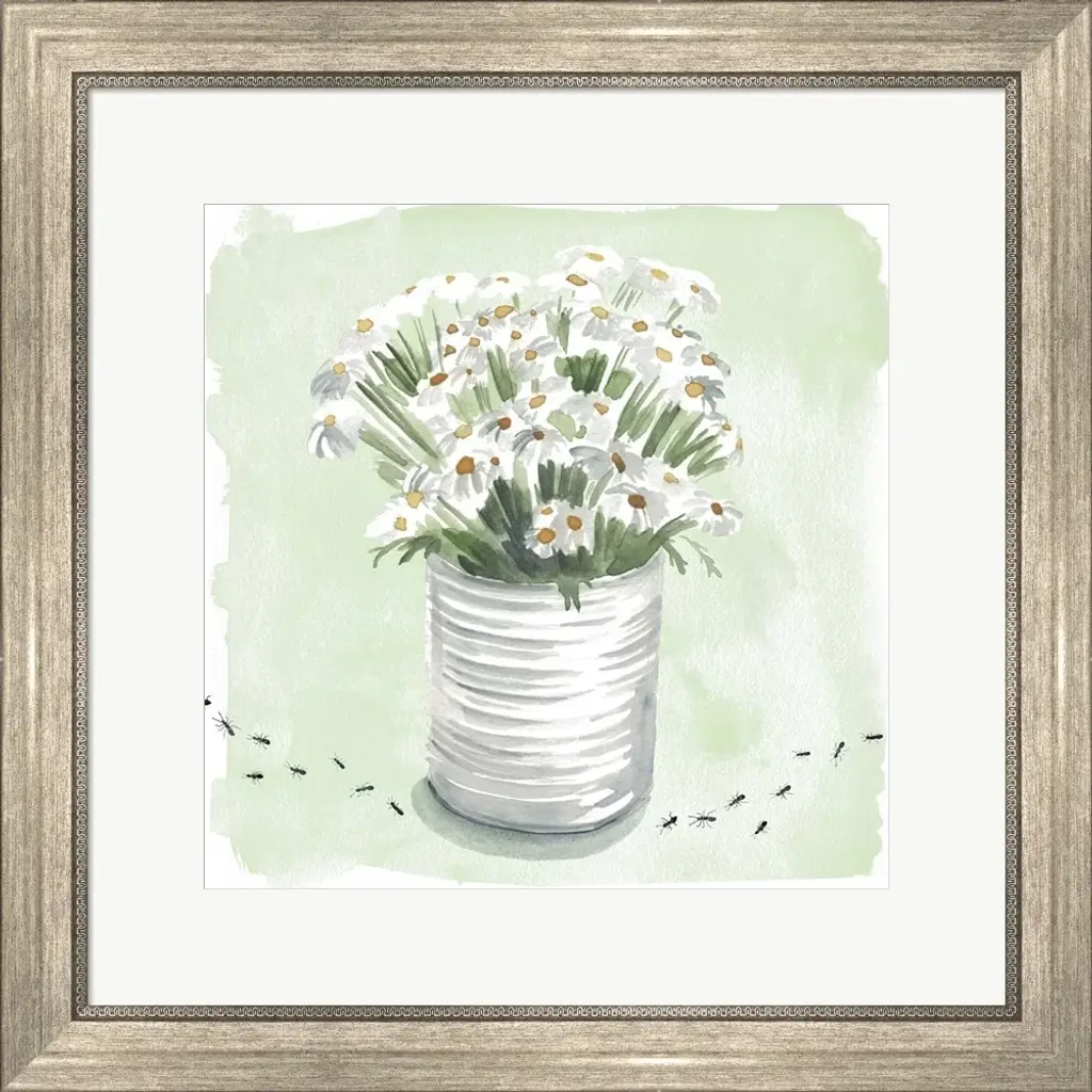 Ironstone Bouquet II Bright by Carol Rowan is a high quality piece of framed artwork. The finished size of this piece is 22" X 22". It has a Classic Champagne Silver with Ornate Inner Edge frame, is single matted and finished with high quality Acrylic Plexiglass.