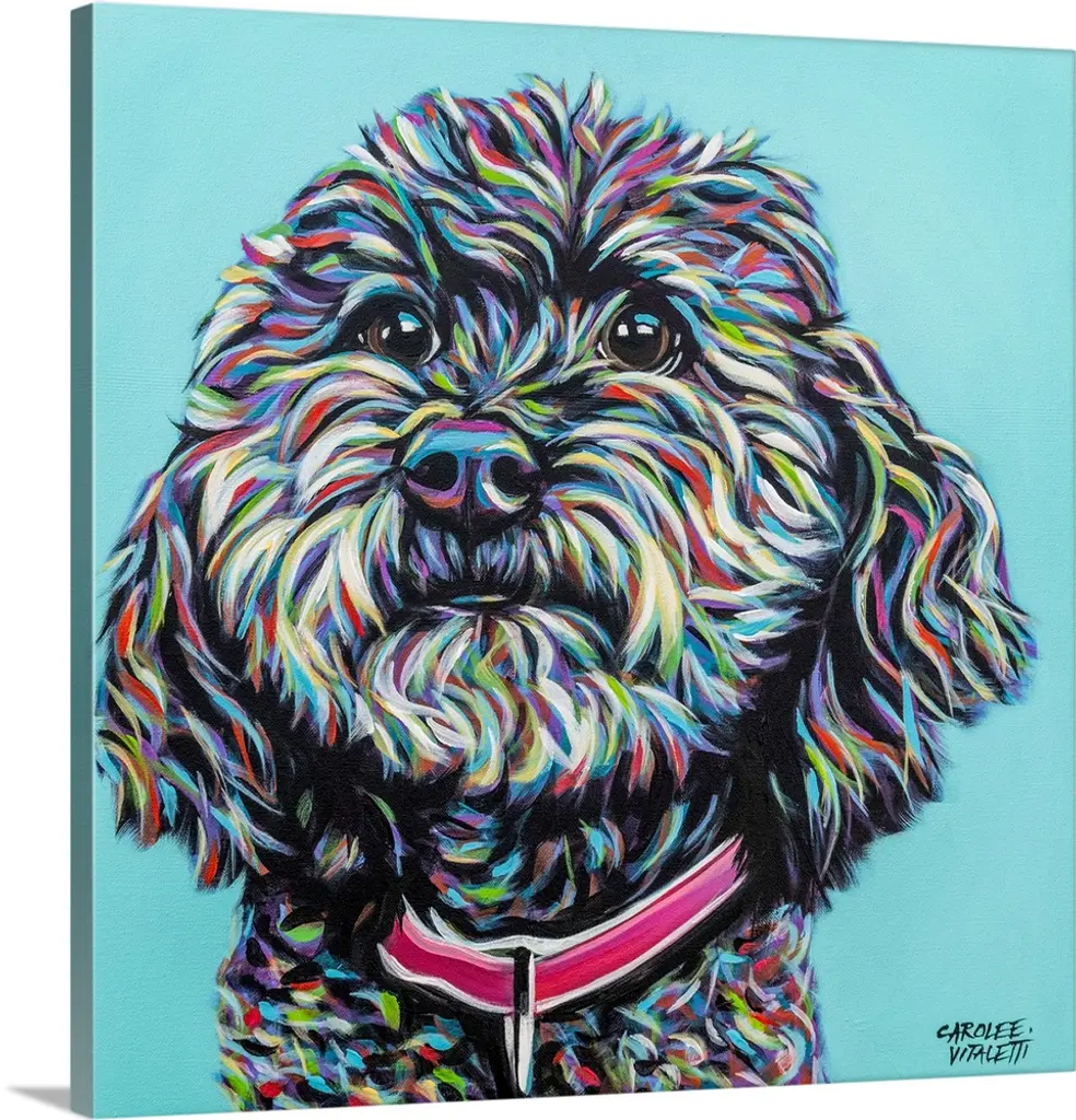 Nosey Dog III by Carolee Vitaletti is a high quality piece of canvas artwork. The finished size of this piece is 25.5" X 34", and it has a depth 1.5" with black painted sides. There is a UV protective coating over the entire image, and it is ready to hang on your wall with no hardware required. 100% Satisfaction Guaranteed.
