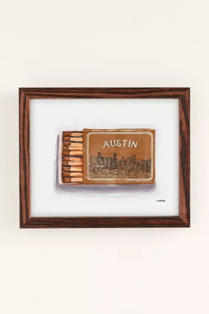 Art print by carolineellisart featuring a Chicago souvenir matchbox. Printed on archival paper made from cotton pressed in Italian mills, this high-quality art print is available in sizes and frames just right for your space. First select your frame (or go frameless), then select your size. **About the Frames** \- The exact width of each frame may vary slightly \- All frames are manufactured in the US \- Matte frames are durable poly \- Wood frames are recycled wood \- All are fitted with protective plexiglass \- Finished with wood moldings, archival backer and protective bumpers **Size** \- Available in multiple sizes \- Use the Size Guides to find the size that fits your space **Content + Care** \- Wipe clean \- Made in the USA