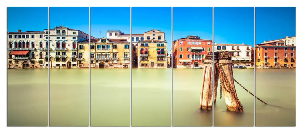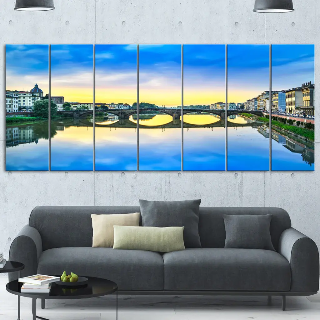 Carraia Medieval Bridge On Arno River, Metal Art, 83x32, 7 Panels