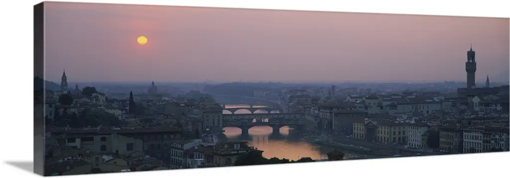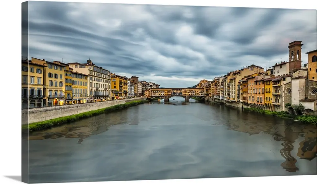 Bring Contemporary Abstraction to your home with this large 83W X 32H Metal wall art. This Carraia Medieval Bridge on Arno River Metal Artwork makes it the focal point of any room or office. - White Gloss Coating ensures colors are extra vibrant with light reflection.- Aluminum grade Sheet Metal with 1 inch mounting frame on the back giving the illusion that the artwork is floating on the wall..- Mounting Brackets are included along with instructions.- High Quality Digital images are created directly into a glossy aluminum panel producing a stunning and captivating print into the glossy finish of the metal.- Water, Fire and Scratch resistant HD Aluminum panels.- Looks better than any photo paper and guaranteed to last at least 20 years- Easy to clean with a microfiber cloth. Colors are far superior to regular Canvas Art. - Easy to Hang