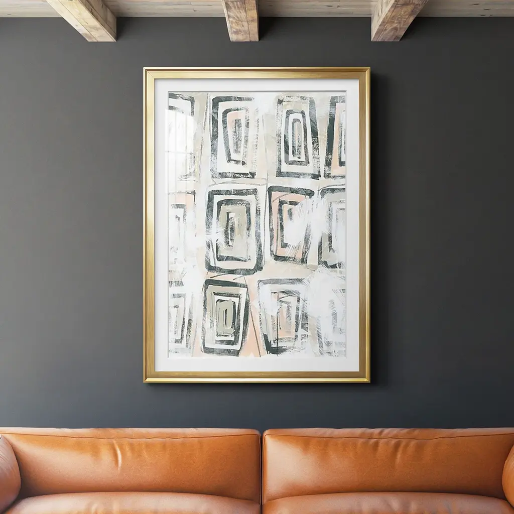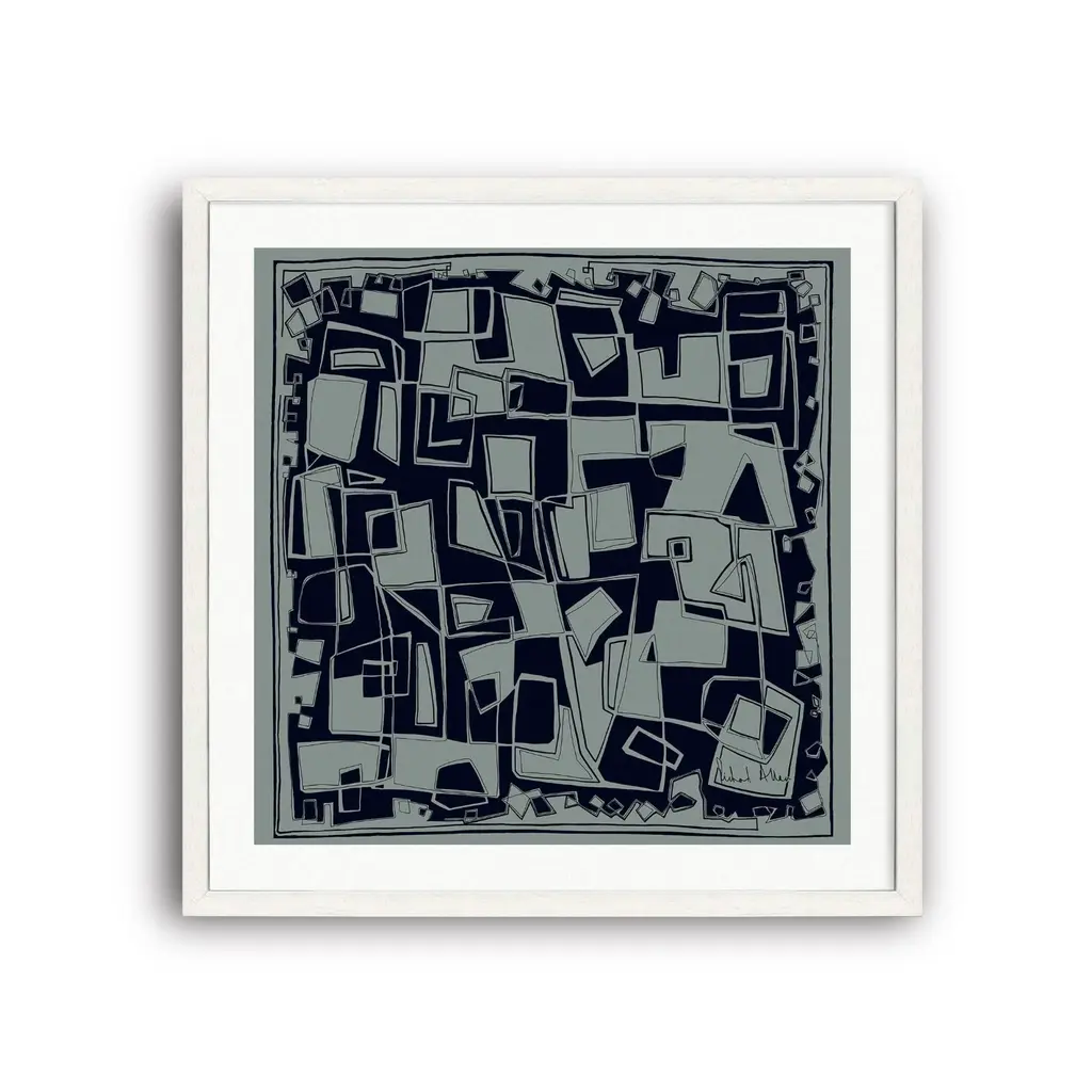 This abstract giclée demonstrates a playful, almost kinetic spirit. Printed on archival paper, it arrives matted, framed, and ready to hang.