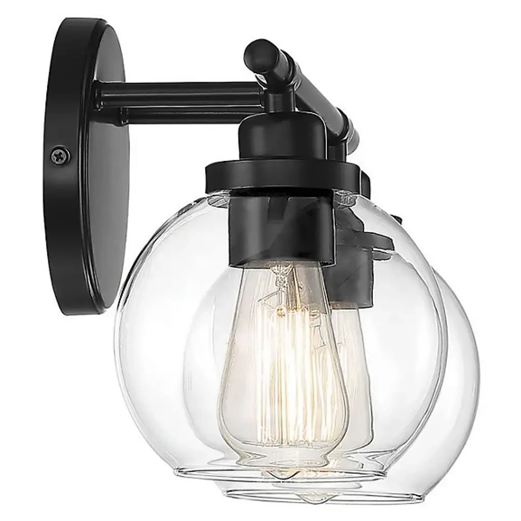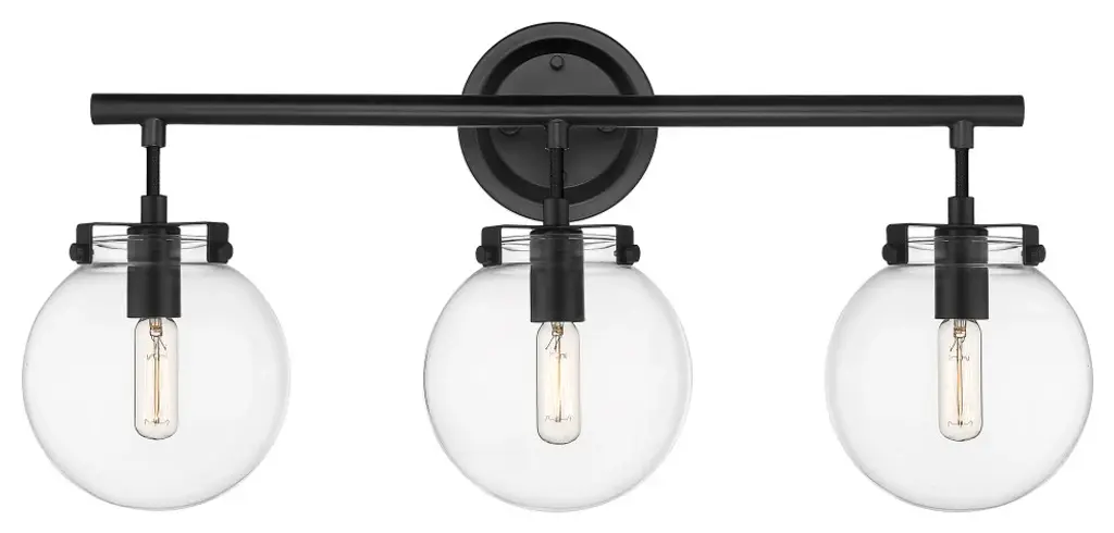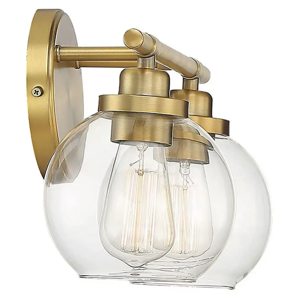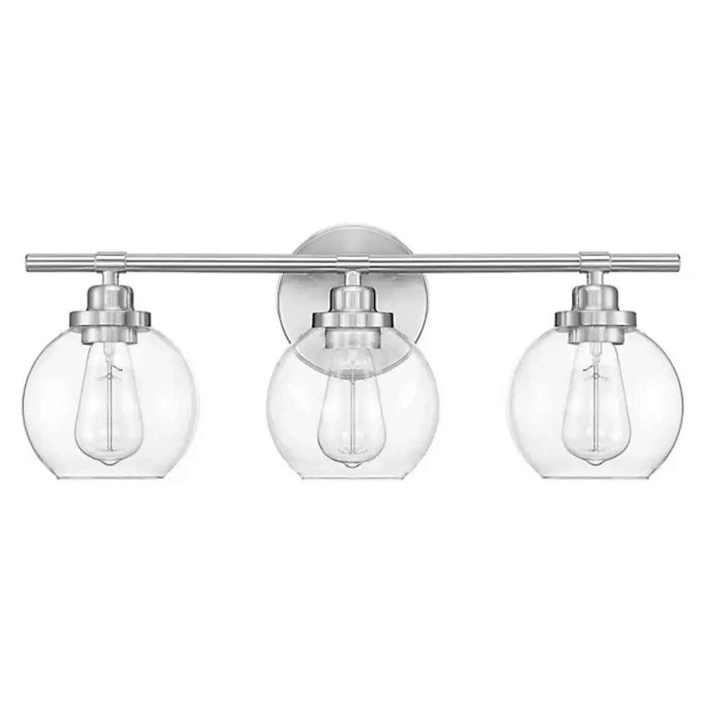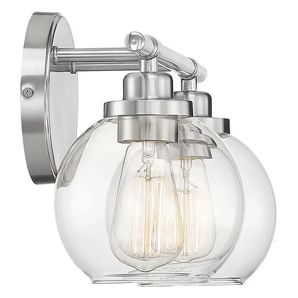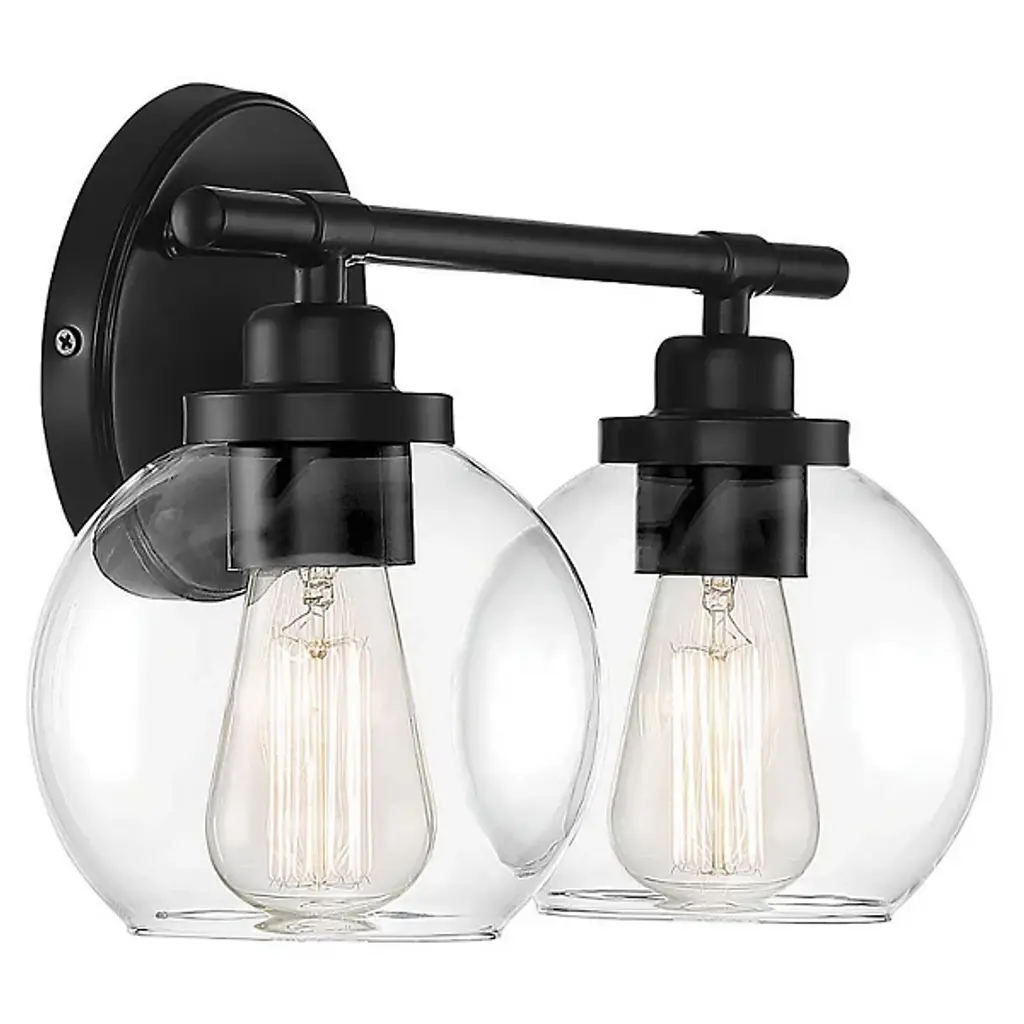 Give your bathroom a chic decorative touch with the Carson Vanity Light by Savoy House. This fixture boasts personality while remaining simple enough to adapt to a range of interior décor themes. Its glass globe shades contain visible incandescent bulb sockets and are held horizontally by a shared metal bar. A circular backplate reiterates its rounded theme and offers a sturdy anchor. When lit, this fixture casts a warm and inviting glow throughout the room.