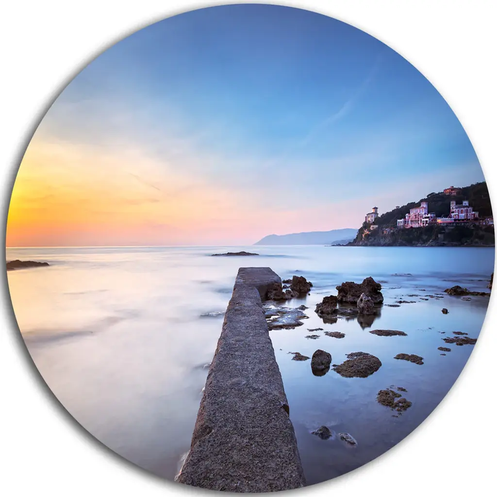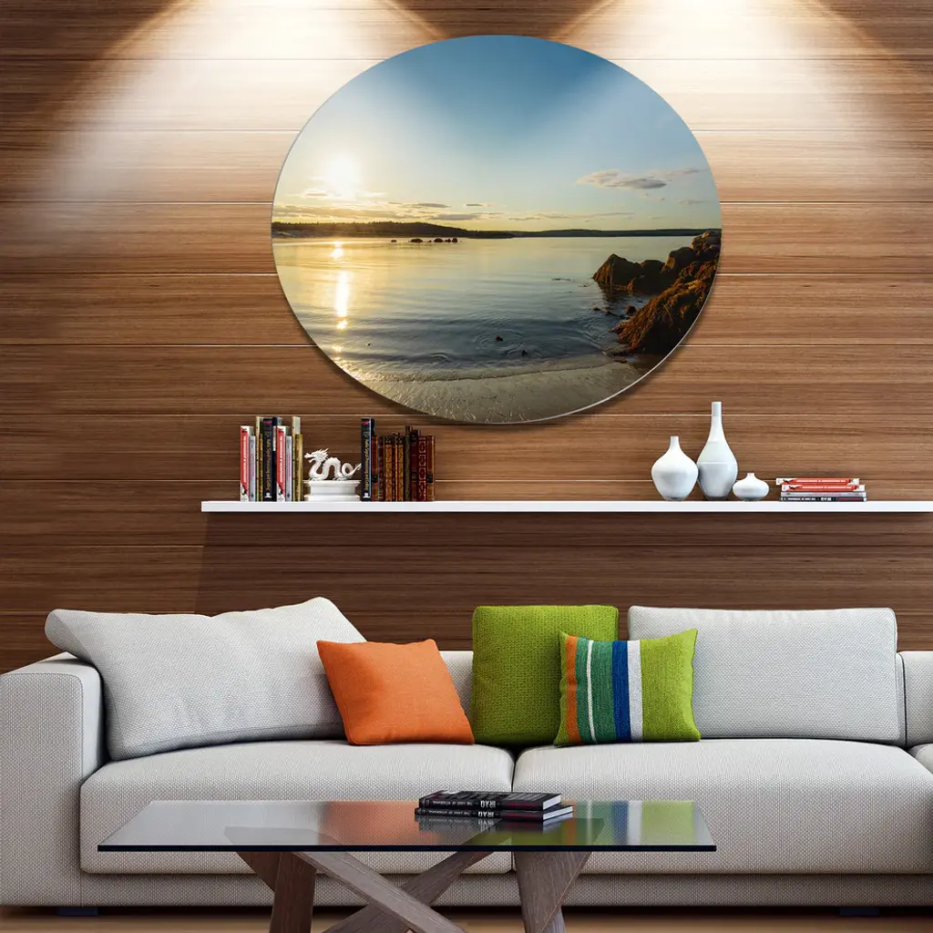 Bring Contemporary Abstraction to your home with this large Circle Metal wall art. This Carters Beach Nova Scotia Canada Metal Artwork makes it the focal point of any room or office. - White Gloss Coating ensures colors are extra vibrant with light reflection.- Aluminum grade Sheet Metal with 1 inch mounting frame on the back giving the illusion that the artwork is floating on the wall..- Mounting Brackets are included along with instructions.- High Quality Digital images are created directly into a glossy aluminum panel producing a stunning and captivating print into the glossy finish of the metal.- Water, Fire and Scratch resistant HD Aluminum panels.- Looks better than any photo paper and guaranteed to last at least 20 years- Easy to clean with a microfiber cloth. Colors are far superior to regular Canvas Art. - Easy to Hang